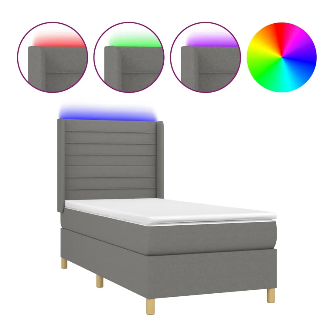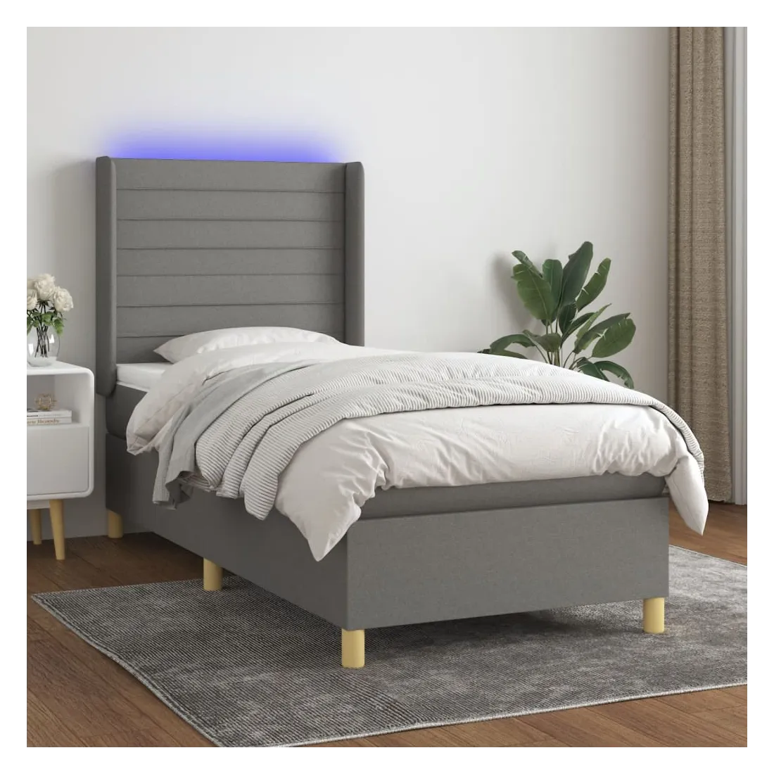 Utilisez ce sommier tapissier avec matelas et LED pour profiter d'un sommeil réparateur ! C'est le point central de votre chambre à coucher. Tissu durable : le tissu présente un aspect simple et épuré, et il est respirant et durable.Tête de lit pratique : la tête de lit est réglable en hauteur selon vos préférences. La tête de lit vous offre un excellent soutien du dos lorsque vous êtes assis dans votre lit pour lire ou regarder la télévision.Bande LED colorée : apportez de l'éclairage dans l'obscurité avec des lumières LED colorées !Matelas à ressorts ensachés : le ressort ensaché individuel intégré est connu pour sa très haute qualité tout en assurant un haut niveau de durabilité et d'adaptabilité. Il peut absorber efficacement le bruit et les chocs causés par les sauts et les rotations.Protège-matelas doux pour la peau : le protège-matelas est recouvert d'un tissu résistant et doux pour la peau, ce qui le rend souple et confortable. Remarque :Pour des raisons d'hygiène, le matelas ne peut pas être retourné si l'emballage est retiré ou ouvert.Seule la partie avec un symbole de ciseaux peut être coupée et seule la partie avec l'USB continuera à fonctionner comme avant.Chaque produit est livré avec un manuel de montage dans la boîte pour un montage facile.Ce produit est doté d'un connecteur USB, mais la source d'alimentation certifiée de USB 5V n'est pas incluse.