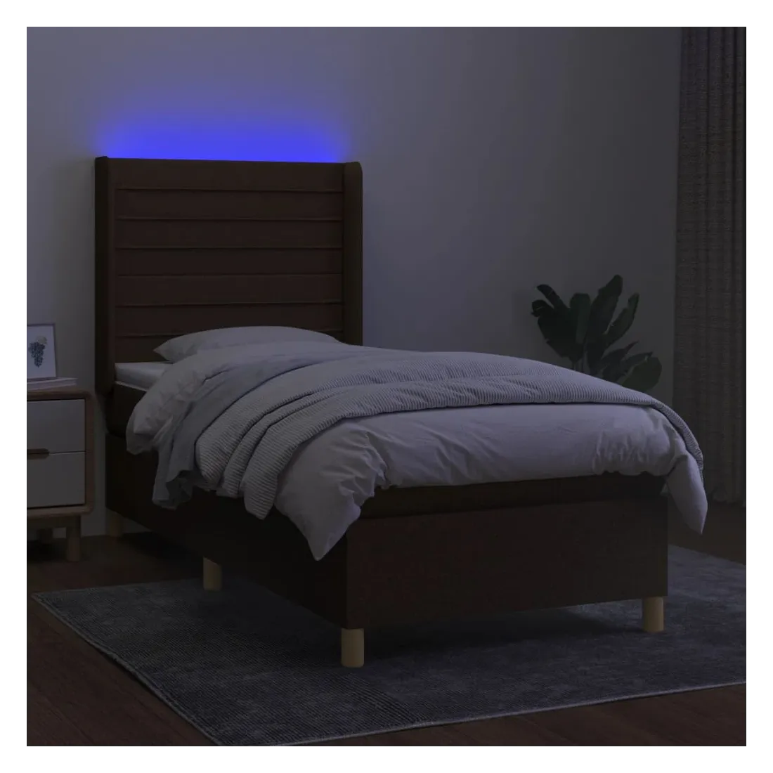 Utilisez ce sommier tapissier avec matelas et LED pour profiter d'un sommeil réparateur ! C'est le point central de votre chambre à coucher. Tissu durable : le tissu présente un aspect simple et épuré, et il est respirant et durable.Tête de lit pratique : la tête de lit est réglable en hauteur selon vos préférences. La tête de lit vous offre un excellent soutien du dos lorsque vous êtes assis dans votre lit pour lire ou regarder la télévision.Bande LED colorée : apportez de l'éclairage dans l'obscurité avec des lumières LED colorées !Matelas à ressorts ensachés : le ressort ensaché individuel intégré est connu pour sa très haute qualité tout en assurant un haut niveau de durabilité et d'adaptabilité. Il peut absorber efficacement le bruit et les chocs causés par les sauts et les rotations.Protège-matelas doux pour la peau : le protège-matelas est recouvert d'un tissu résistant et doux pour la peau, ce qui le rend souple et confortable. Remarque :Pour des raisons d'hygiène, le matelas ne peut pas être retourné si l'emballage est retiré ou ouvert.Seule la partie avec un symbole de ciseaux peut être coupée et seule la partie avec l'USB continuera à fonctionner comme avant.Chaque produit est livré avec un manuel de montage dans la boîte pour un montage facile.Ce produit est doté d'un connecteur USB, mais la source d'alimentation certifiée de USB 5V n'est pas incluse.