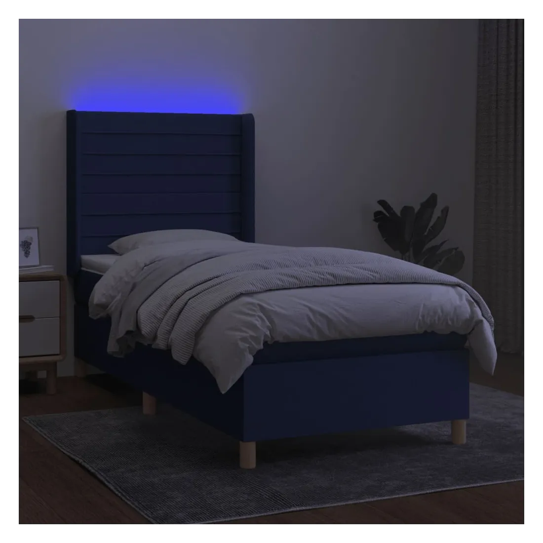 Utilisez ce sommier tapissier avec matelas et LED pour profiter d'un sommeil réparateur ! C'est le point central de votre chambre à coucher. Tissu durable : le tissu présente un aspect simple et épuré, et il est respirant et durable.Tête de lit pratique : la tête de lit est réglable en hauteur selon vos préférences. La tête de lit vous offre un excellent soutien du dos lorsque vous êtes assis dans votre lit pour lire ou regarder la télévision.Bande LED colorée : apportez de l'éclairage dans l'obscurité avec des lumières LED colorées !Matelas à ressorts ensachés : le ressort ensaché individuel intégré est connu pour sa très haute qualité tout en assurant un haut niveau de durabilité et d'adaptabilité. Il peut absorber efficacement le bruit et les chocs causés par les sauts et les rotations.Protège-matelas doux pour la peau : le protège-matelas est recouvert d'un tissu résistant et doux pour la peau, ce qui le rend souple et confortable. Remarque :Pour des raisons d'hygiène, le matelas ne peut pas être retourné si l'emballage est retiré ou ouvert.Seule la partie avec un symbole de ciseaux peut être coupée et seule la partie avec l'USB continuera à fonctionner comme avant.Chaque produit est livré avec un manuel de montage dans la boîte pour un montage facile.Ce produit est doté d'un connecteur USB, mais la source d'alimentation certifiée de USB 5V n'est pas incluse.