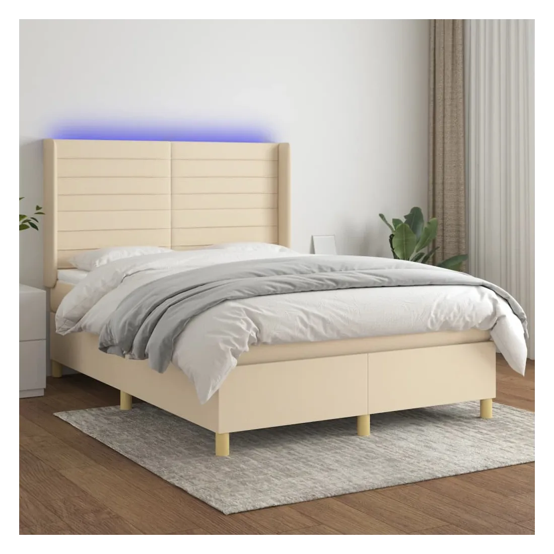 Sommier à lattes de lit matelas et LED Crème 140x200 cm Tissu