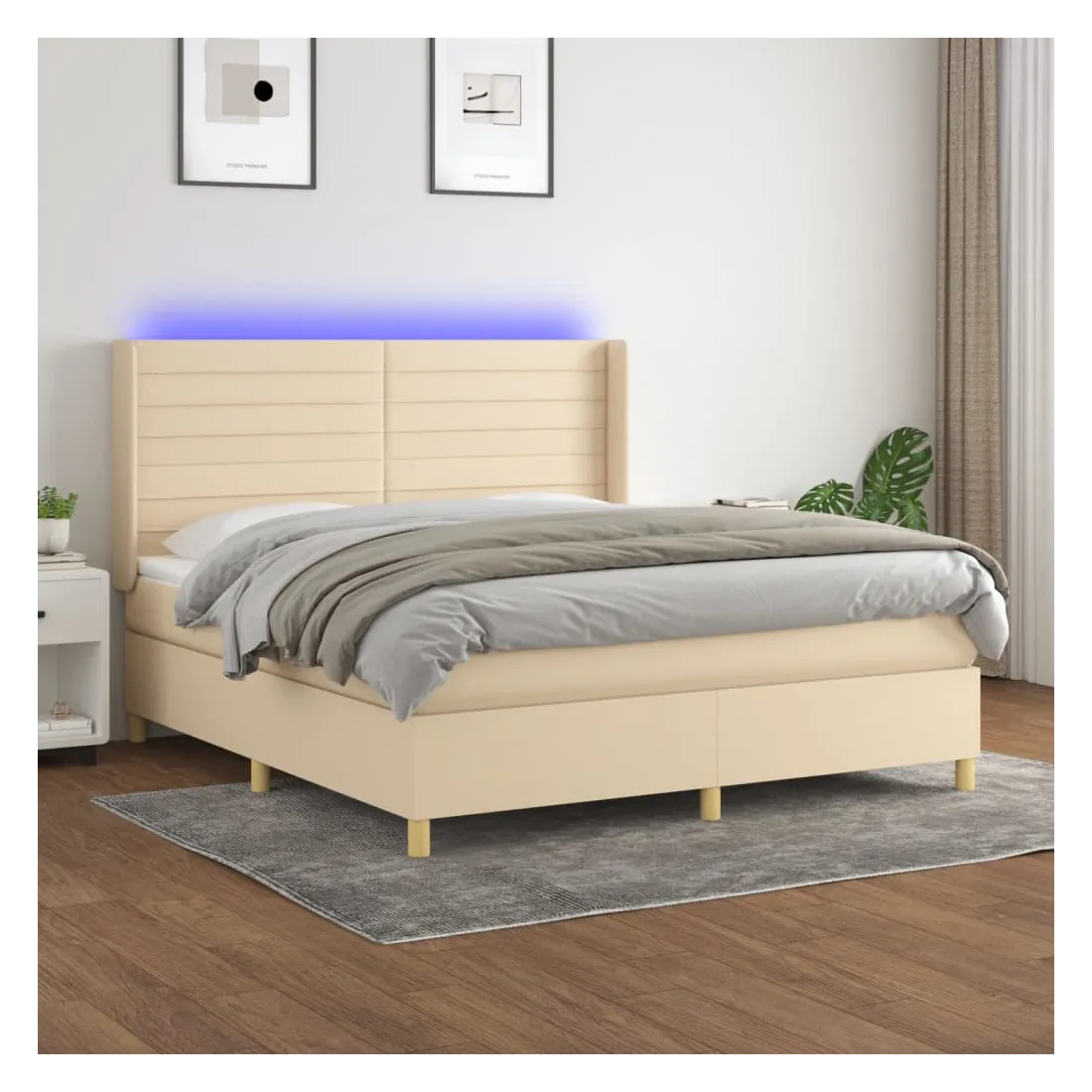 Utilisez ce sommier tapissier avec matelas et LED pour profiter d'un sommeil réparateur ! C'est le point central de votre chambre à coucher. Tissu durable : le tissu présente un aspect simple et épuré, et il est respirant et durable.Tête de lit pratique : la tête de lit est réglable en hauteur selon vos préférences. La tête de lit vous offre un excellent soutien du dos lorsque vous êtes assis dans votre lit pour lire ou regarder la télévision.Bande LED colorée : apportez de l'éclairage dans l'obscurité avec des lumières LED colorées !Matelas à ressorts ensachés : le ressort ensaché individuel intégré est connu pour sa très haute qualité tout en assurant un haut niveau de durabilité et d'adaptabilité. Il peut absorber efficacement le bruit et les chocs causés par les sauts et les rotations.Protège-matelas doux pour la peau : le protège-matelas est recouvert d'un tissu résistant et doux pour la peau, ce qui le rend souple et confortable. Remarque :Pour des raisons d'hygiène, le matelas ne peut pas être retourné si l'emballage est retiré ou ouvert.Seule la partie avec un symbole de ciseaux peut être coupée et seule la partie avec l'USB continuera à fonctionner comme avant.Chaque produit est livré avec un manuel de montage dans la boîte pour un montage facile.Ce produit est doté d'un connecteur USB, mais la source d'alimentation certifiée de USB 5V n'est pas incluse.