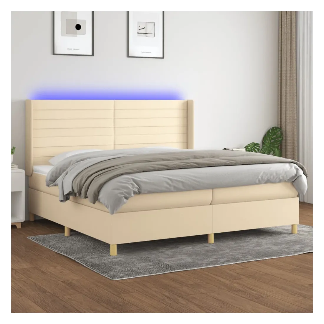 Utilisez ce sommier tapissier avec matelas et LED pour profiter d'un sommeil réparateur ! C'est le point central de votre chambre à coucher. Tissu durable : le tissu présente un aspect simple et épuré, et il est respirant et durable.Tête de lit pratique : la tête de lit est réglable en hauteur selon vos préférences. La tête de lit vous offre un excellent soutien du dos lorsque vous êtes assis dans votre lit pour lire ou regarder la télévision.Bande LED colorée : apportez de l'éclairage dans l'obscurité avec des lumières LED colorées !Matelas à ressorts ensachés : le ressort ensaché individuel intégré est connu pour sa très haute qualité tout en assurant un haut niveau de durabilité et d'adaptabilité. Il peut absorber efficacement le bruit et les chocs causés par les sauts et les rotations.Protège-matelas doux pour la peau : le protège-matelas est recouvert d'un tissu résistant et doux pour la peau, ce qui le rend souple et confortable. Remarque :Pour des raisons d'hygiène, le matelas ne peut pas être retourné si l'emballage est retiré ou ouvert.Seule la partie avec un symbole de ciseaux peut être coupée et seule la partie avec l'USB continuera à fonctionner comme avant.Chaque produit est livré avec un manuel de montage dans la boîte pour un montage facile.Ce produit est doté d'un connecteur USB, mais la source d'alimentation certifiée de USB 5V n'est pas incluse.