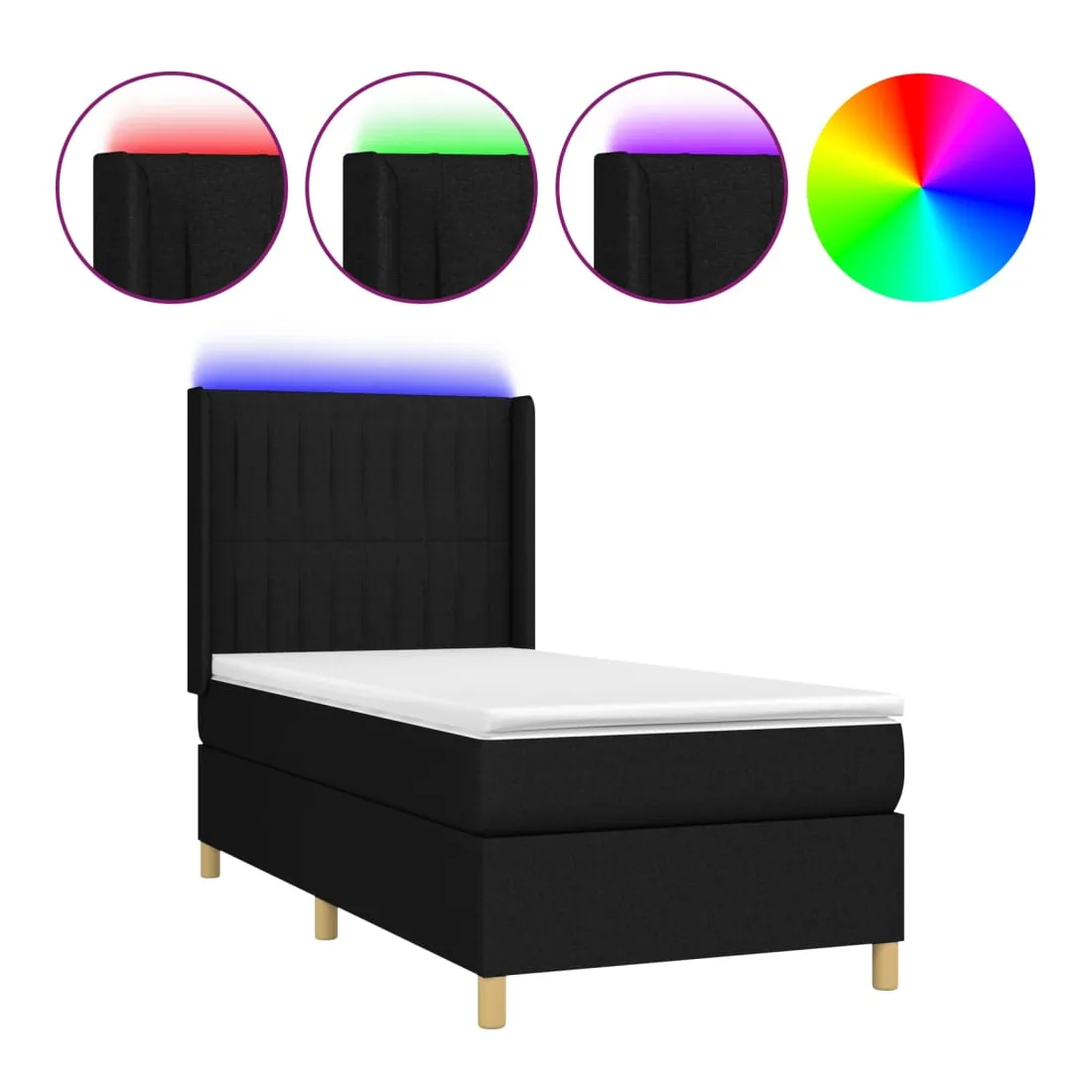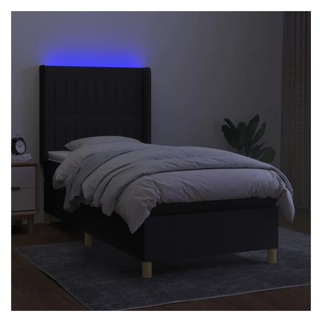 Utilisez ce sommier tapissier avec matelas et LED pour profiter d'un sommeil réparateur ! C'est le point central de votre chambre à coucher. Tissu durable : le tissu présente un aspect simple et épuré, et il est respirant et durable.Tête de lit pratique : la tête de lit est réglable en hauteur selon vos préférences. La tête de lit vous offre un excellent soutien du dos lorsque vous êtes assis dans votre lit pour lire ou regarder la télévision.Bande LED colorée : apportez de l'éclairage dans l'obscurité avec des lumières LED colorées !Matelas à ressorts ensachés : le ressort ensaché individuel intégré est connu pour sa très haute qualité tout en assurant un haut niveau de durabilité et d'adaptabilité. Il peut absorber efficacement le bruit et les chocs causés par les sauts et les rotations.Protège-matelas doux pour la peau : le protège-matelas est recouvert d'un tissu résistant et doux pour la peau, ce qui le rend souple et confortable. Remarque :Pour des raisons d'hygiène, le matelas ne peut pas être retourné si l'emballage est retiré ou ouvert.Seule la partie avec un symbole de ciseaux peut être coupée et seule la partie avec l'USB continuera à fonctionner comme avant.Chaque produit est livré avec un manuel de montage dans la boîte pour un montage facile.Ce produit est doté d'un connecteur USB, mais la source d'alimentation certifiée de USB 5V n'est pas incluse.
