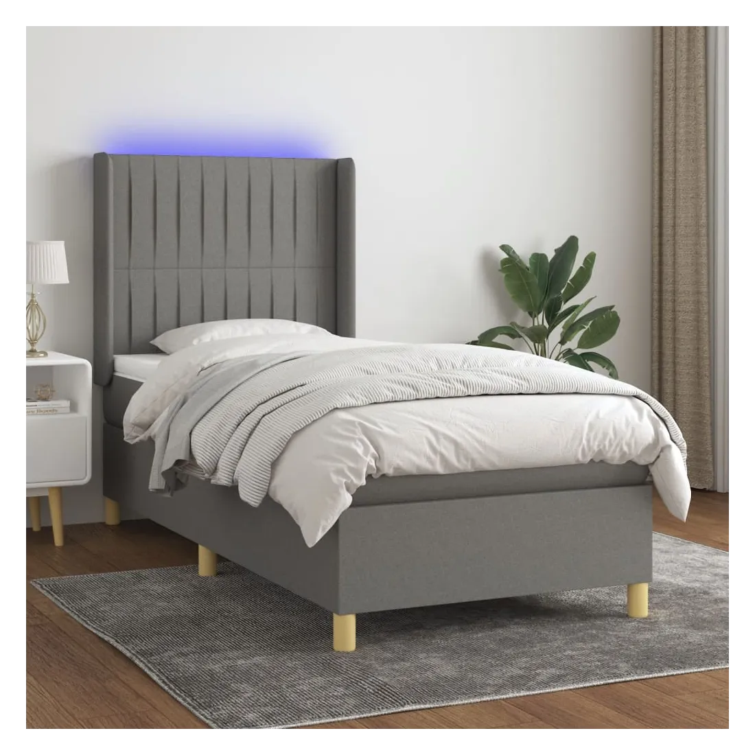 Sommier à lattes de lit matelas LED Gris foncé 90x200cm Tissu