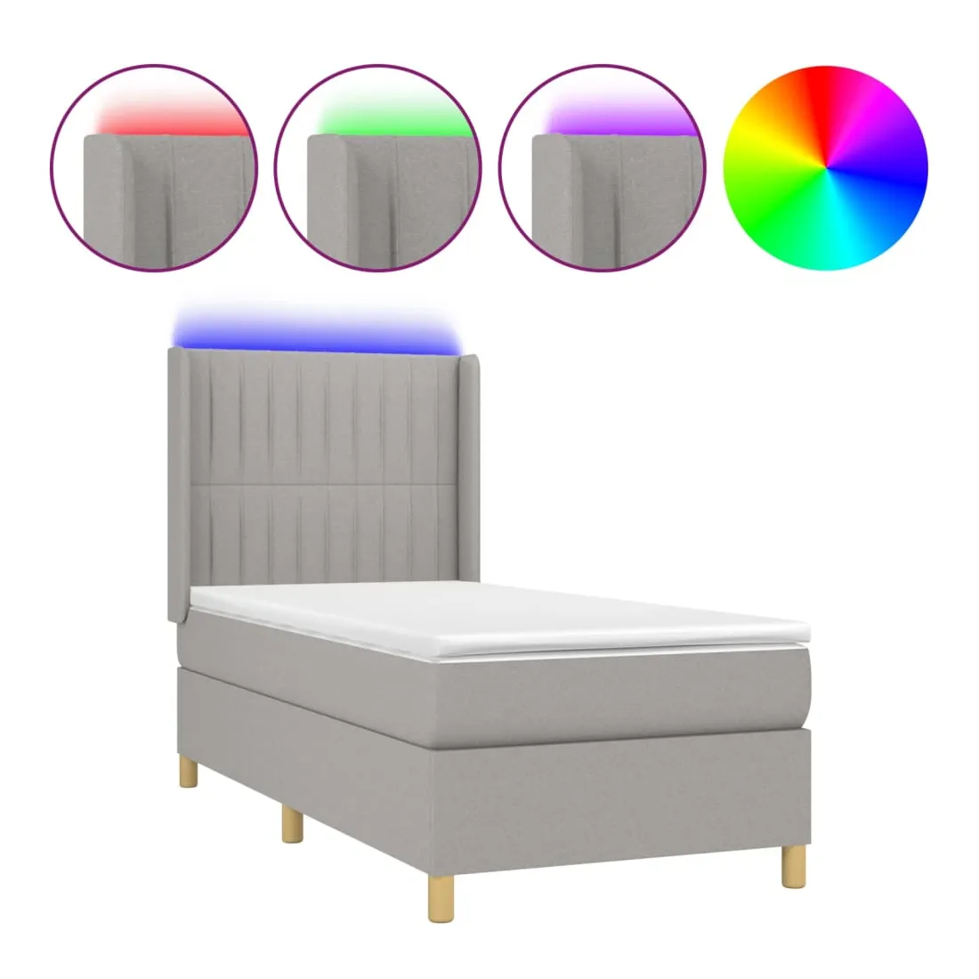 Sommier à lattes de lit matelas LED Gris clair 100x200 cm Tissu