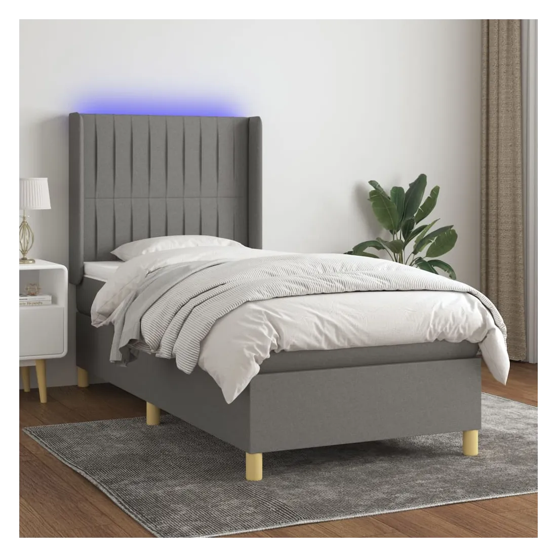 Utilisez ce sommier tapissier avec matelas et LED pour profiter d'un sommeil réparateur ! C'est le point central de votre chambre à coucher. Tissu durable : le tissu présente un aspect simple et épuré, et il est respirant et durable.Tête de lit pratique : la tête de lit est réglable en hauteur selon vos préférences. La tête de lit vous offre un excellent soutien du dos lorsque vous êtes assis dans votre lit pour lire ou regarder la télévision.Bande LED colorée : apportez de l'éclairage dans l'obscurité avec des lumières LED colorées !Matelas à ressorts ensachés : le ressort ensaché individuel intégré est connu pour sa très haute qualité tout en assurant un haut niveau de durabilité et d'adaptabilité. Il peut absorber efficacement le bruit et les chocs causés par les sauts et les rotations.Protège-matelas doux pour la peau : le protège-matelas est recouvert d'un tissu résistant et doux pour la peau, ce qui le rend souple et confortable. Remarque :Pour des raisons d'hygiène, le matelas ne peut pas être retourné si l'emballage est retiré ou ouvert.Seule la partie avec un symbole de ciseaux peut être coupée et seule la partie avec l'USB continuera à fonctionner comme avant.Chaque produit est livré avec un manuel de montage dans la boîte pour un montage facile.Ce produit est doté d'un connecteur USB, mais la source d'alimentation certifiée de USB 5V n'est pas incluse.