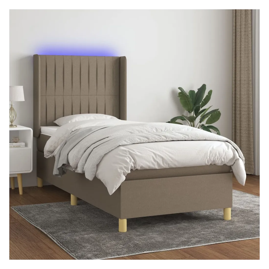 Sommier à lattes de lit matelas et LED Taupe 100x200 cm Tissu
