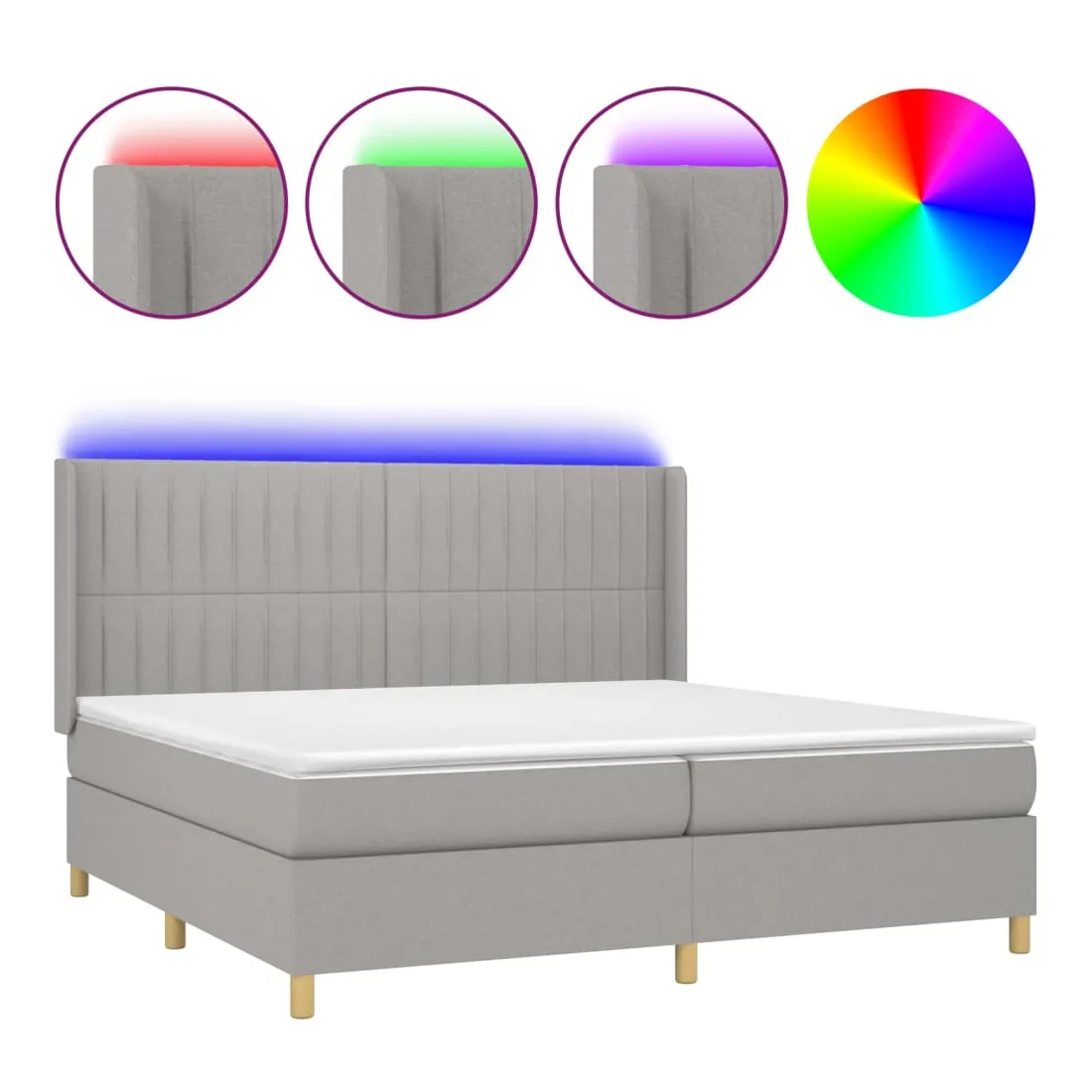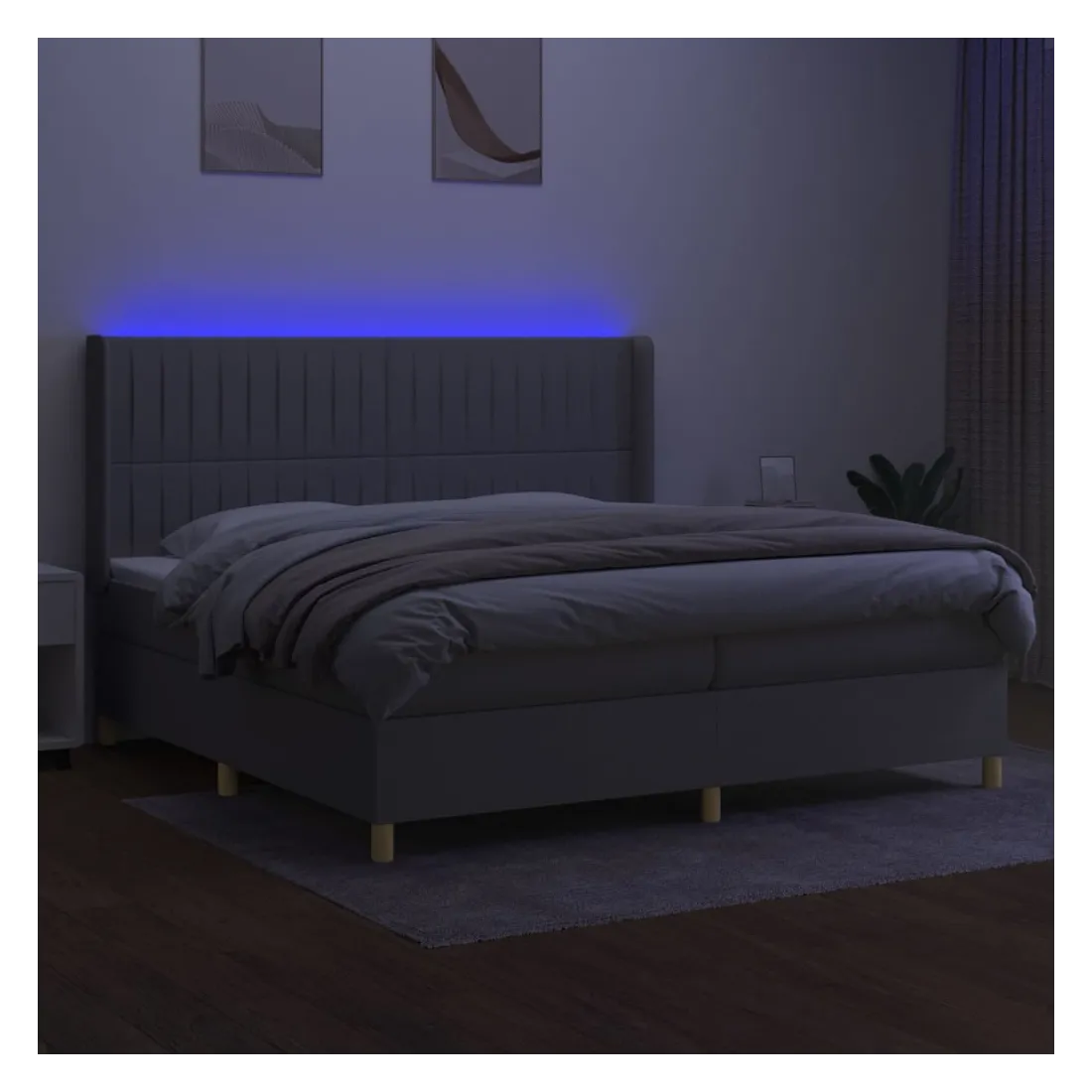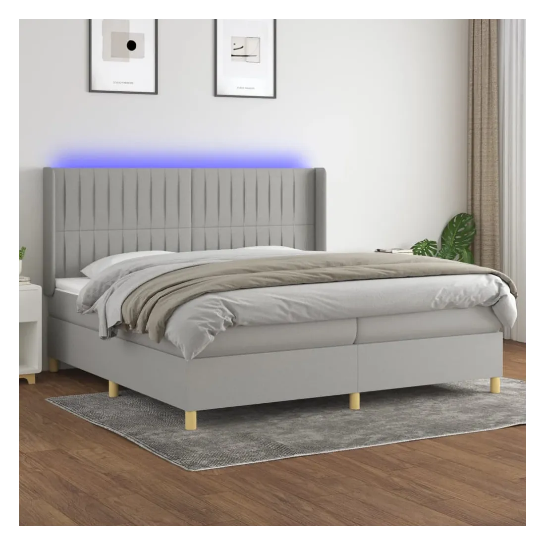 Utilisez ce sommier tapissier avec matelas et LED pour profiter d'un sommeil réparateur ! C'est le point central de votre chambre à coucher. Tissu durable : le tissu présente un aspect simple et épuré, et il est respirant et durable. Tête de lit pratique : la tête de lit est réglable en hauteur selon vos préférences. La tête de lit vous offre un excellent soutien du dos lorsque vous êtes assis dans votre lit pour lire ou regarder la télévision. Bande LED colorée : apportez de l'éclairage dans l'obscurité avec des lumières LED colorées ! Matelas à ressorts ensachés : le ressort ensaché individuel intégré est connu pour sa très haute qualité tout en assurant un haut niveau de durabilité et d'adaptabilité. Il peut absorber efficacement le bruit et les chocs causés par les sauts et les rot