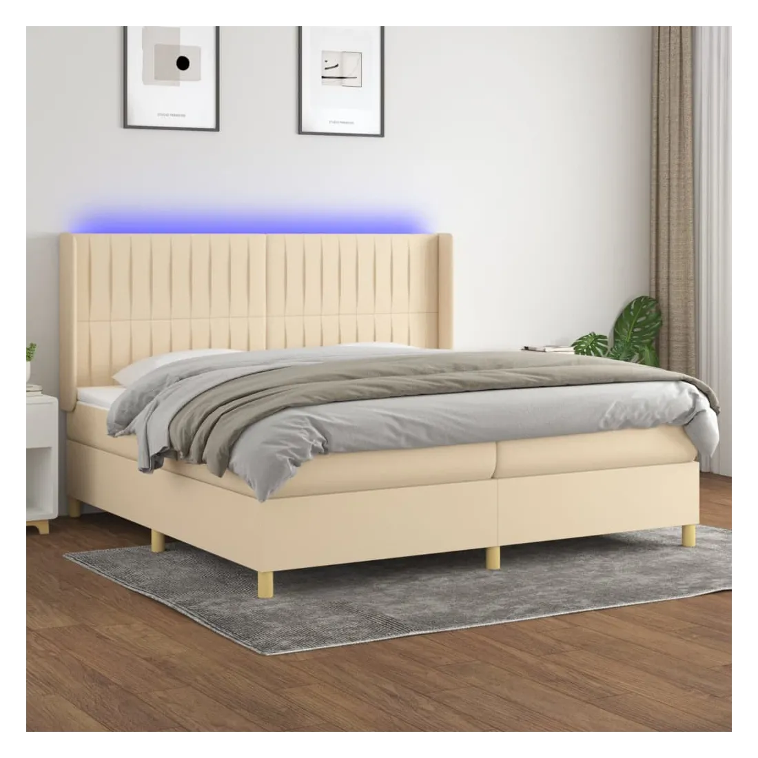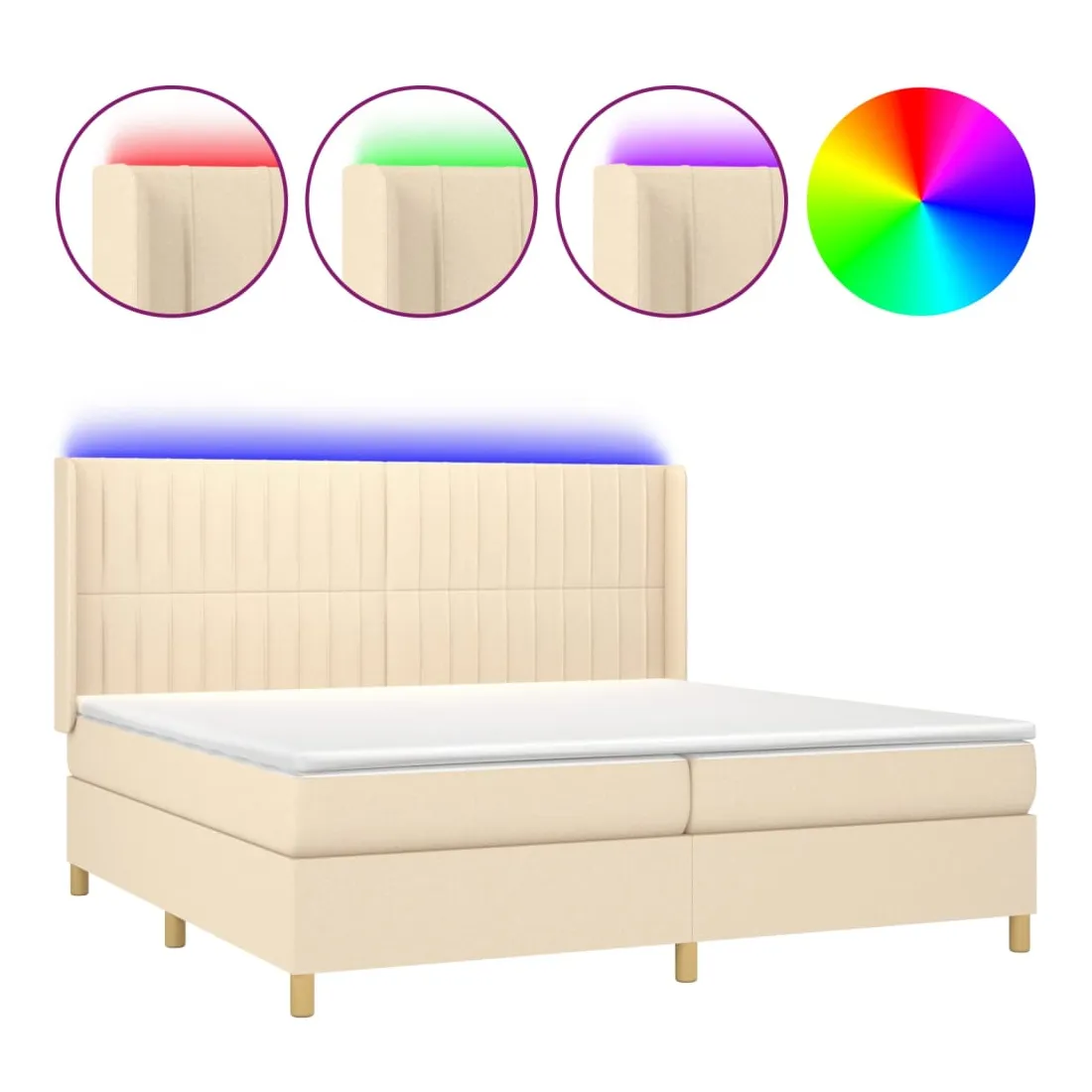 Utilisez ce sommier tapissier avec matelas et LED pour profiter d'un sommeil réparateur ! C'est le point central de votre chambre à coucher. Tissu durable : le tissu présente un aspect simple et épuré, et il est respirant et durable.Tête de lit pratique : la tête de lit est réglable en hauteur selon vos préférences. La tête de lit vous offre un excellent soutien du dos lorsque vous êtes assis dans votre lit pour lire ou regarder la télévision.Bande LED colorée : apportez de l'éclairage dans l'obscurité avec des lumières LED colorées !Matelas à ressorts ensachés : le ressort ensaché individuel intégré est connu pour sa très haute qualité tout en assurant un haut niveau de durabilité et d'adaptabilité. Il peut absorber efficacement le bruit et les chocs causés par les sauts et les rotations.Protège-matelas doux pour la peau : le protège-matelas est recouvert d'un tissu résistant et doux pour la peau, ce qui le rend souple et confortable. Remarque :Pour des raisons d'hygiène, le matelas ne peut pas être retourné si l'emballage est retiré ou ouvert.Seule la partie avec un symbole de ciseaux peut être coupée et seule la partie avec l'USB continuera à fonctionner comme avant.Chaque produit est livré avec un manuel de montage dans la boîte pour un montage facile.Ce produit est doté d'un connecteur USB, mais la source d'alimentation certifiée de USB 5V n'est pas incluse.
