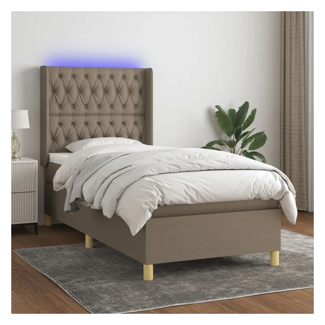 Utilisez ce sommier tapissier avec matelas et LED pour profiter d'un sommeil réparateur ! C'est le point central de votre chambre à coucher. Tissu durable : le tissu présente un aspect simple et épuré, et il est respirant et durable.Tête de lit pratique : la tête de lit est réglable en hauteur selon vos préférences. La tête de lit vous offre un excellent soutien du dos lorsque vous êtes assis dans votre lit pour lire ou regarder la télévision.Bande LED colorée : apportez de l'éclairage dans l'obscurité avec des lumières LED colorées !Matelas à ressorts ensachés : le ressort ensaché individuel intégré est connu pour sa très haute qualité tout en assurant un haut niveau de durabilité et d'adaptabilité. Il peut absorber efficacement le bruit et les chocs causés par les sauts et les rotations.Protège-matelas doux pour la peau : le protège-matelas est recouvert d'un tissu résistant et doux pour la peau, ce qui le rend souple et confortable. Remarque :Pour des raisons d'hygiène, le matelas ne peut pas être retourné si l'emballage est retiré ou ouvert.Seule la partie avec un symbole de ciseaux peut être coupée et seule la partie avec l'USB continuera à fonctionner comme avant.Chaque produit est livré avec un manuel de montage dans la boîte pour un montage facile.Ce produit est doté d'un connecteur USB, mais la source d'alimentation certifiée de USB 5V n'est pas incluse.