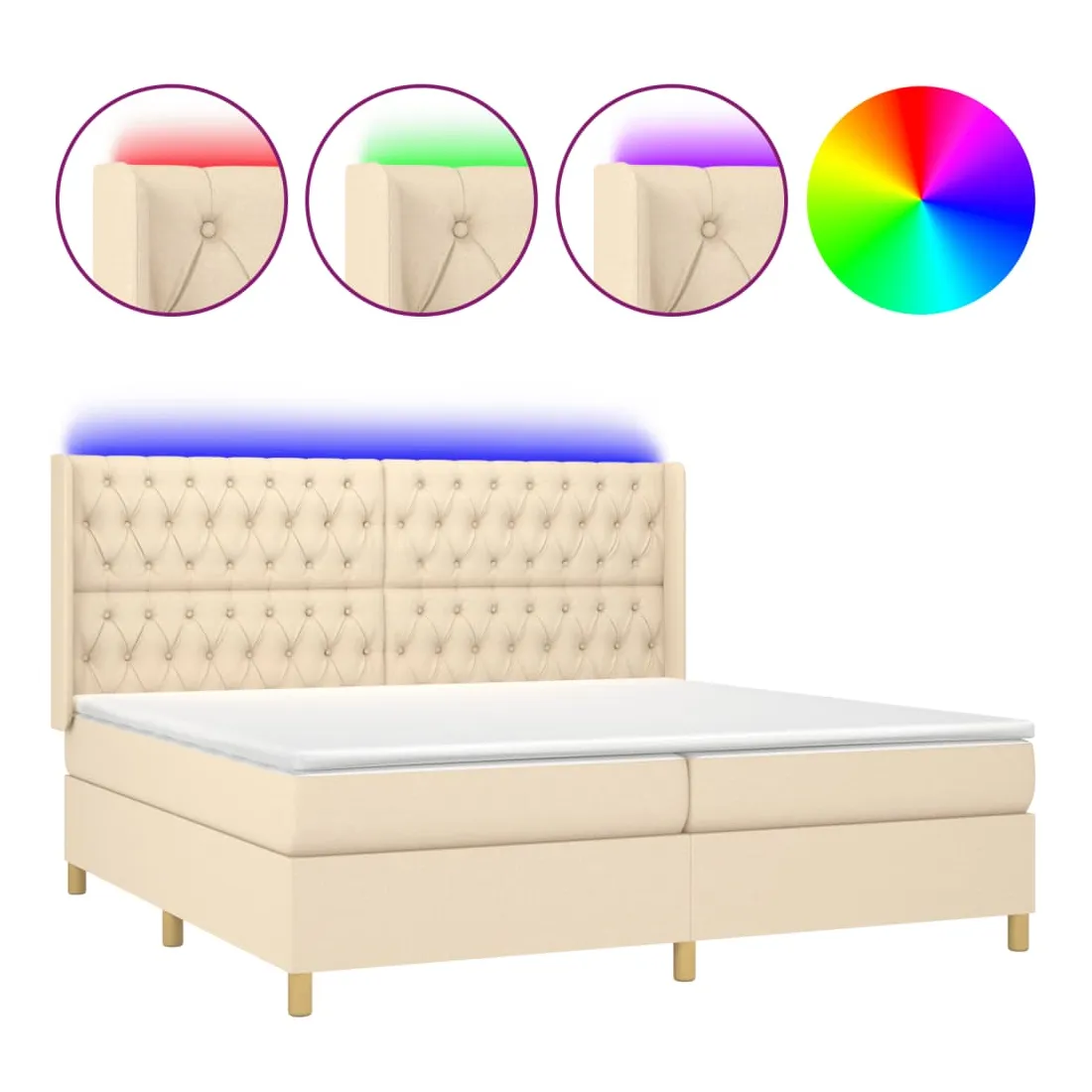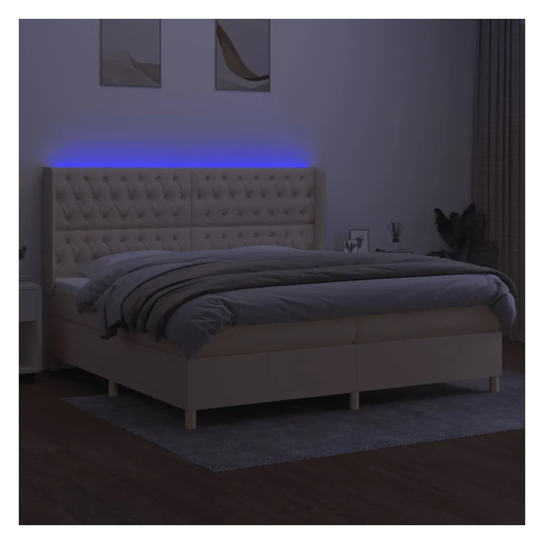 Utilisez ce sommier tapissier avec matelas et LED pour profiter d'un sommeil réparateur ! C'est le point central de votre chambre à coucher. Tissu durable : le tissu présente un aspect simple et épuré, et il est respirant et durable.Tête de lit pratique : la tête de lit est réglable en hauteur selon vos préférences. La tête de lit vous offre un excellent soutien du dos lorsque vous êtes assis dans votre lit pour lire ou regarder la télévision.Bande LED colorée : apportez de l'éclairage dans l'obscurité avec des lumières LED colorées !Matelas à ressorts ensachés : le ressort ensaché individuel intégré est connu pour sa très haute qualité tout en assurant un haut niveau de durabilité et d'adaptabilité. Il peut absorber efficacement le bruit et les chocs causés par les sauts et les rotations.Protège-matelas doux pour la peau : le protège-matelas est recouvert d'un tissu résistant et doux pour la peau, ce qui le rend souple et confortable. Remarque :Pour des raisons d'hygiène, le matelas ne peut pas être retourné si l'emballage est retiré ou ouvert.Seule la partie avec un symbole de ciseaux peut être coupée et seule la partie avec l'USB continuera à fonctionner comme avant.Chaque produit est livré avec un manuel de montage dans la boîte pour un montage facile.Ce produit est doté d'un connecteur USB, mais la source d'alimentation certifiée de USB 5V n'est pas incluse.
