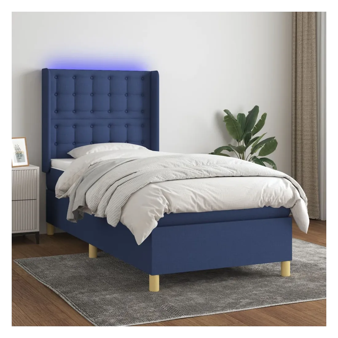 Utilisez ce sommier tapissier avec matelas et LED pour profiter d'un sommeil réparateur ! C'est le point central de votre chambre à coucher. Tissu durable : le tissu présente un aspect simple et épuré, et il est respirant et durable.Tête de lit pratique : la tête de lit est réglable en hauteur selon vos préférences. La tête de lit vous offre un excellent soutien du dos lorsque vous êtes assis dans votre lit pour lire ou regarder la télévision.Bande LED colorée : apportez de l'éclairage dans l'obscurité avec des lumières LED colorées !Matelas à ressorts ensachés : le ressort ensaché individuel intégré est connu pour sa très haute qualité tout en assurant un haut niveau de durabilité et d'adaptabilité. Il peut absorber efficacement le bruit et les chocs causés par les sauts et les rotations.Protège-matelas doux pour la peau : le protège-matelas est recouvert d'un tissu résistant et doux pour la peau, ce qui le rend souple et confortable. Remarque :Pour des raisons d'hygiène, le matelas ne peut pas être retourné si l'emballage est retiré ou ouvert.Seule la partie avec un symbole de ciseaux peut être coupée et seule la partie avec l'USB continuera à fonctionner comme avant.Chaque produit est livré avec un manuel de montage dans la boîte pour un montage facile.Ce produit est doté d'un connecteur USB, mais la source d'alimentation certifiée de USB 5V n'est pas incluse.