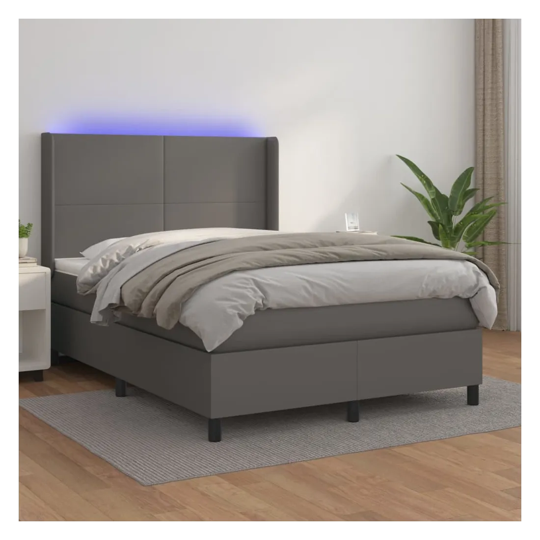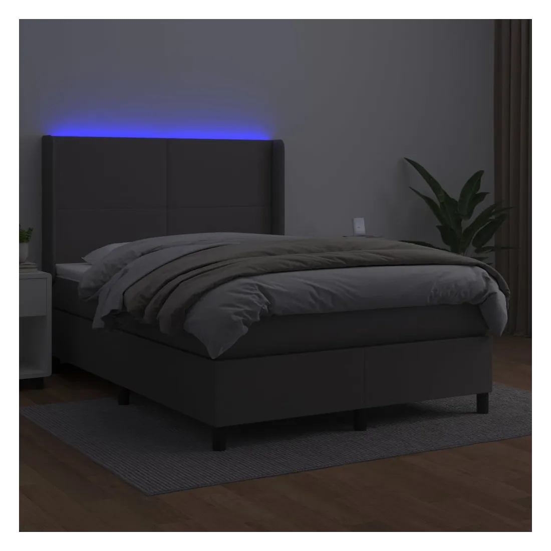 Utilisez ce sommier tapissier avec matelas et LED pour profiter d'un sommeil réparateur ! C'est le point central de votre chambre à coucher. Similicuir durable : le similicuir de qualité supérieure est un matériau très durable. Il est résistant aux taches, ce qui le rend facile à nettoyer avec un chiffon humide. La surface lisse donne également un aspect luxueux et la beauté du cuir véritable. Tête de lit pratique : la tête de lit est réglable en hauteur selon vos préférences. La tête de lit vous offre un excellent soutien du dos lorsque vous êtes assis dans votre lit pour lire ou regarder la télévision. Bande LED colorée : apportez de l'éclairage dans l'obscurité avec des lumières LED colorées ! Matelas à ressorts ensachés : le ressort ensaché individuel intégré est connu pour sa très