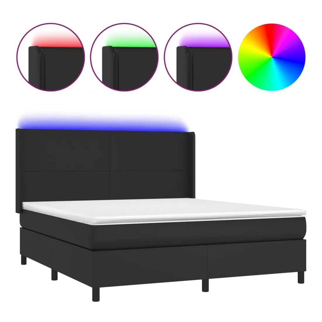 Utilisez ce sommier tapissier avec matelas et LED pour profiter d'un sommeil réparateur ! C'est le point central de votre chambre à coucher. Similicuir durable : le similicuir de qualité supérieure est un matériau très durable. Il est résistant aux taches, ce qui le rend facile à nettoyer avec un chiffon humide. La surface lisse donne également un aspect luxueux et la beauté du cuir véritable.Tête de lit pratique : la tête de lit est réglable en hauteur selon vos préférences. La tête de lit vous offre un excellent soutien du dos lorsque vous êtes assis dans votre lit pour lire ou regarder la télévision.Bande LED colorée : apportez de l'éclairage dans l'obscurité avec des lumières LED colorées !Matelas à ressorts ensachés : le ressort ensaché individuel intégré est connu pour sa très haute qualité tout en assurant un haut niveau de durabilité et d'adaptabilité. Il peut absorber efficacement le bruit et les chocs causés par les sauts et les rotations.Protège-matelas doux pour la peau : le protège-matelas est recouvert d'un tissu résistant et doux pour la peau, ce qui le rend souple et confortable. Remarque :Pour des raisons d'hygiène, le matelas ne peut pas être retourné si l'emballage est retiré ou ouvert.Seule la partie avec un symbole de ciseaux peut être coupée et seule la partie avec l'USB continuera à fonctionner comme avant.Chaque produit est livré avec un manuel de montage dans la boîte pour un montage facile.Ce produit est doté d'un connecteur USB, mais la source d'alimentation certifiée de USB 5V n'est pas incluse.
