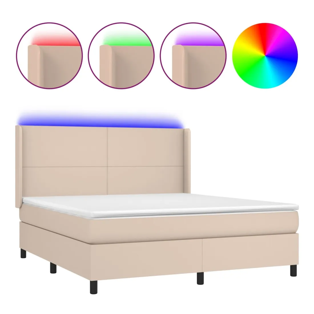 vidaXLUtilisez ce sommier tapissier avec matelas et LED pour profiter d'un sommeil réparateur ! C'est le point central de votre chambre à coucher. Similicuir durable : le similicuir de qualité supérieure est un matériau très durable. Il est résistant aux taches, ce qui le rend facile à nettoyer avec un chiffon humide. La surface lisse donne également un aspect luxueux et la beauté du cuir véritable.Tête de lit pratique : la tête de lit est réglable en hauteur selon vos préférences. La tête de lit vous offre un excellent soutien du dos lorsque vous êtes assis dans votre lit pour lire ou regarder la télévision.Bande LED colorée : apportez de l'éclairage dans l'obscurité avec des lumières LED colorées !Matelas à ressorts ensachés : le ressort ensaché individuel intégré est connu pour sa très haute qualité tout en assurant un haut niveau de durabilité et d'adaptabilité. Il peut absorber efficacement le bruit et les chocs causés par les sauts et les rotations.Protège-matelas doux pour la peau : le protège-matelas est recouvert d'un tissu résistant et doux pour la peau, ce qui le rend souple et confortable. Remarque :Pour des raisons d'hygiène, le matelas ne peut pas être retourné si l'emballage est retiré ou ouvert.Seule la partie avec un symbole de ciseaux peut être coupée et seule la partie avec l'USB continuera à fonctionner comme avant.Chaque produit est livré avec un manuel de montage dans la boîte pour un montage facile.Ce produit est doté d'un connecteur USB, mais la source d'alimentation certifiée de USB 5V n'est pas incluse.