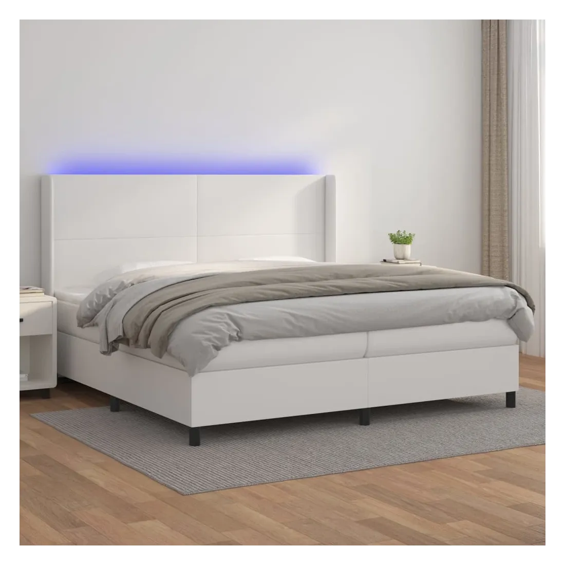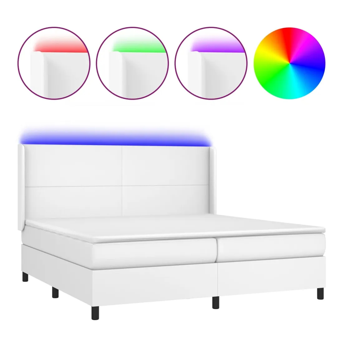 Utilisez ce sommier tapissier avec matelas et LED pour profiter d'un sommeil réparateur ! C'est le point central de votre chambre à coucher. Similicuir durable : le similicuir de qualité supérieure est un matériau très durable. Il est résistant aux taches, ce qui le rend facile à nettoyer avec un chiffon humide. La surface lisse donne également un aspect luxueux et la beauté du cuir véritable.Tête de lit pratique : la tête de lit est réglable en hauteur selon vos préférences. La tête de lit vous offre un excellent soutien du dos lorsque vous êtes assis dans votre lit pour lire ou regarder la télévision.Bande LED colorée : apportez de l'éclairage dans l'obscurité avec des lumières LED colorées !Matelas à ressorts ensachés : le ressort ensaché individuel intégré est connu pour sa très haute qualité tout en assurant un haut niveau de durabilité et d'adaptabilité. Il peut absorber efficacement le bruit et les chocs causés par les sauts et les rotations.Protège-matelas doux pour la peau : le protège-matelas est recouvert d'un tissu résistant et doux pour la peau, ce qui le rend souple et confortable. Remarque :Pour des raisons d'hygiène, le matelas ne peut pas être retourné si l'emballage est retiré ou ouvert.Seule la partie avec un symbole de ciseaux peut être coupée et seule la partie avec l'USB continuera à fonctionner comme avant.Chaque produit est livré avec un manuel de montage dans la boîte pour un montage facile.Ce produit est doté d'un connecteur USB, mais la source d'alimentation certifiée de USB 5V n'est pas incluse.