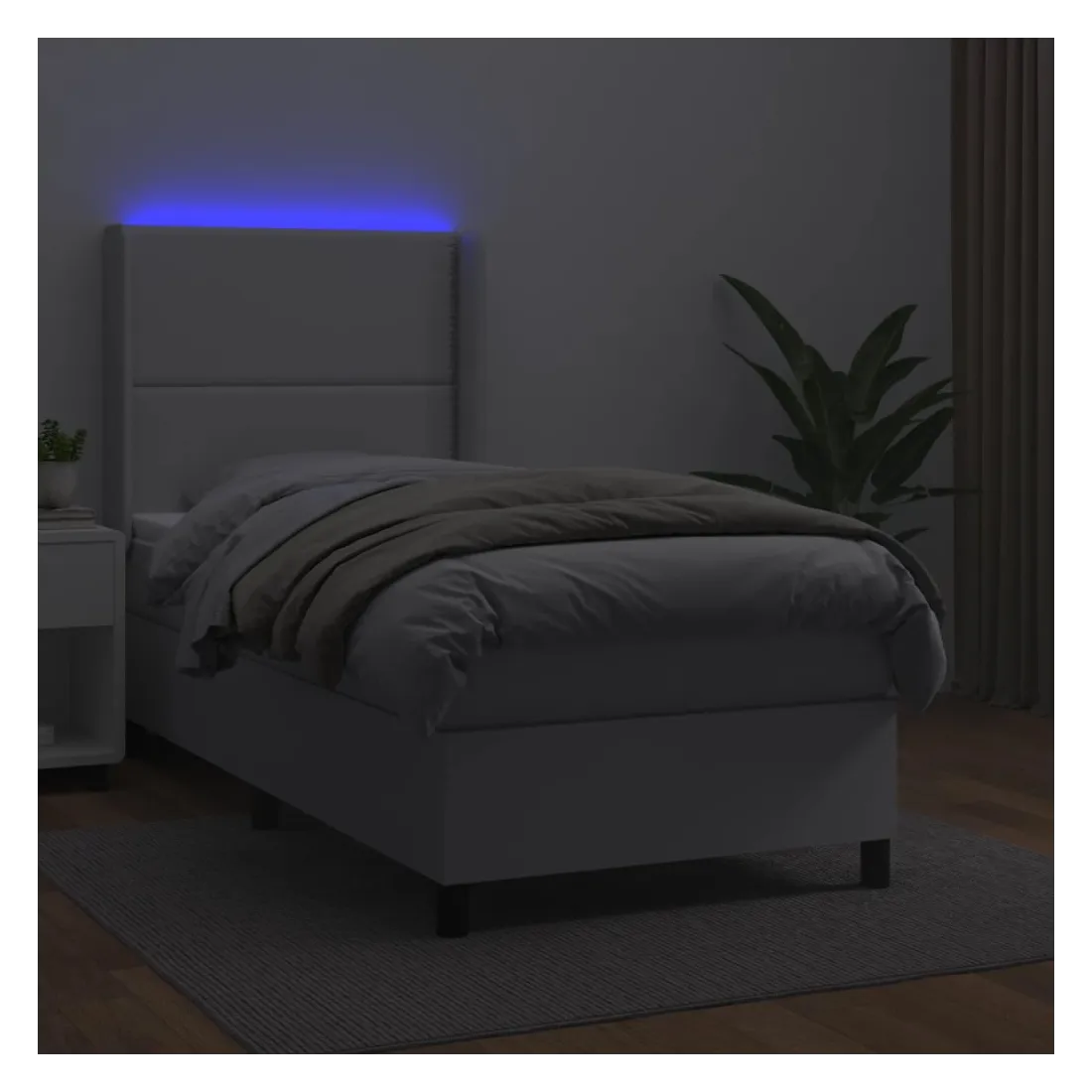 Utilisez ce sommier tapissier avec matelas et LED pour profiter d'un sommeil réparateur ! C'est le point central de votre chambre à coucher. Similicuir durable : le similicuir de qualité supérieure est un matériau très durable. Il est résistant aux taches, ce qui le rend facile à nettoyer avec un chiffon humide. La surface lisse donne également un aspect luxueux et la beauté du cuir véritable.Tête de lit pratique : la tête de lit est réglable en hauteur selon vos préférences. La tête de lit vous offre un excellent soutien du dos lorsque vous êtes assis dans votre lit pour lire ou regarder la télévision.Bande LED colorée : apportez de l'éclairage dans l'obscurité avec des lumières LED colorées !Matelas à ressorts ensachés : le ressort ensaché individuel intégré est connu pour sa très haute qualité tout en assurant un haut niveau de durabilité et d'adaptabilité. Il peut absorber efficacement le bruit et les chocs causés par les sauts et les rotations.Protège-matelas doux pour la peau : le protège-matelas est recouvert d'un tissu résistant et doux pour la peau, ce qui le rend souple et confortable. Remarque :Pour des raisons d'hygiène, le matelas ne peut pas être retourné si l'emballage est retiré ou ouvert.Seule la partie avec un symbole de ciseaux peut être coupée et seule la partie avec l'USB continuera à fonctionner comme avant.Chaque produit est livré avec un manuel de montage dans la boîte pour un montage facile.Ce produit est doté d'un connecteur USB, mais la source d'alimentation certifiée de USB 5V n'est pas incluse.