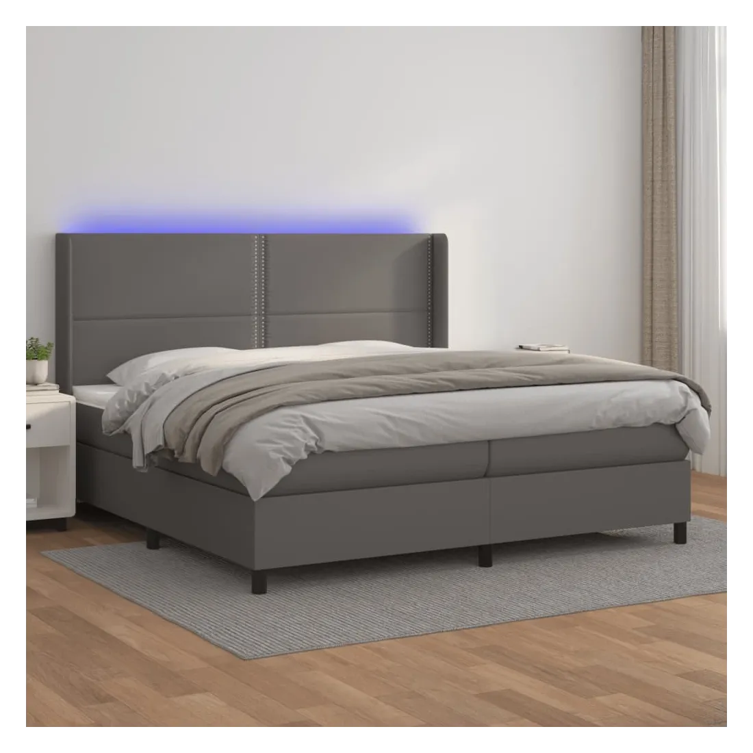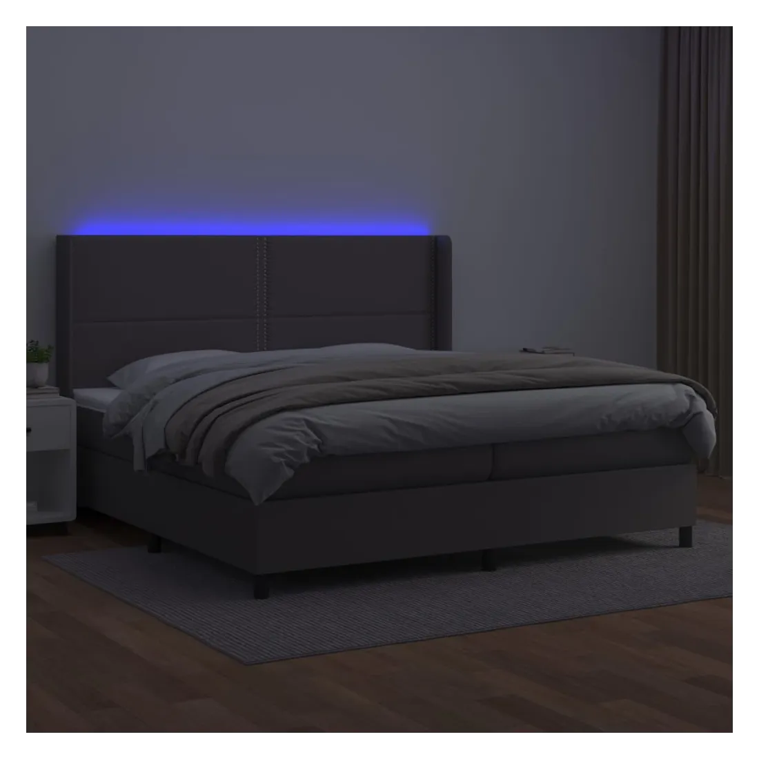 Utilisez ce sommier tapissier avec matelas et LED pour profiter d'un sommeil réparateur ! C'est le point central de votre chambre à coucher. Similicuir durable : le similicuir de qualité supérieure est un matériau très durable. Il est résistant aux taches, ce qui le rend facile à nettoyer avec un chiffon humide. La surface lisse donne également un aspect luxueux et la beauté du cuir véritable. Tête de lit pratique : la tête de lit est réglable en hauteur selon vos préférences. La tête de lit vous offre un excellent soutien du dos lorsque vous êtes assis dans votre lit pour lire ou regarder la télévision. Bande LED colorée : apportez de l'éclairage dans l'obscurité avec des lumières LED colorées ! Matelas à ressorts ensachés : le ressort ensaché individuel intégré est connu pour sa très