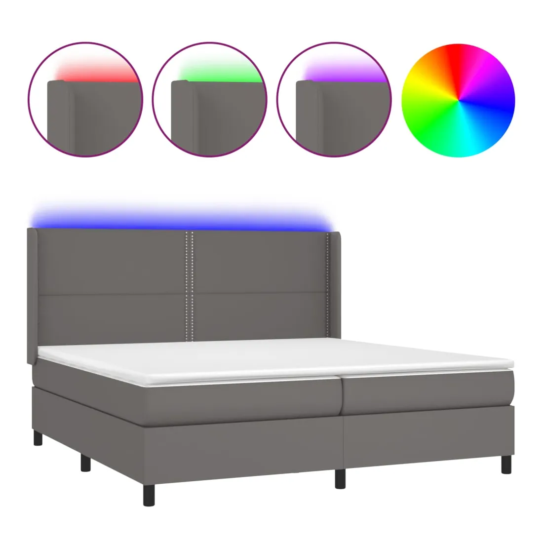 Utilisez ce sommier tapissier avec matelas et LED pour profiter d'un sommeil réparateur ! C'est le point central de votre chambre à coucher. Similicuir durable : le similicuir de qualité supérieure est un matériau très durable. Il est résistant aux taches, ce qui le rend facile à nettoyer avec un chiffon humide. La surface lisse donne également un aspect luxueux et la beauté du cuir véritable.Tête de lit pratique : la tête de lit est réglable en hauteur selon vos préférences. La tête de lit vous offre un excellent soutien du dos lorsque vous êtes assis dans votre lit pour lire ou regarder la télévision.Bande LED colorée : apportez de l'éclairage dans l'obscurité avec des lumières LED colorées !Matelas à ressorts ensachés : le ressort ensaché individuel intégré est connu pour sa très haute qualité tout en assurant un haut niveau de durabilité et d'adaptabilité. Il peut absorber efficacement le bruit et les chocs causés par les sauts et les rotations.Protège-matelas doux pour la peau : le protège-matelas est recouvert d'un tissu résistant et doux pour la peau, ce qui le rend souple et confortable. Remarque :Pour des raisons d'hygiène, le matelas ne peut pas être retourné si l'emballage est retiré ou ouvert.Seule la partie avec un symbole de ciseaux peut être coupée et seule la partie avec l'USB continuera à fonctionner comme avant.Chaque produit est livré avec un manuel de montage dans la boîte pour un montage facile.Ce produit est doté d'un connecteur USB, mais la source d'alimentation certifiée de USB 5V n'est pas incluse.