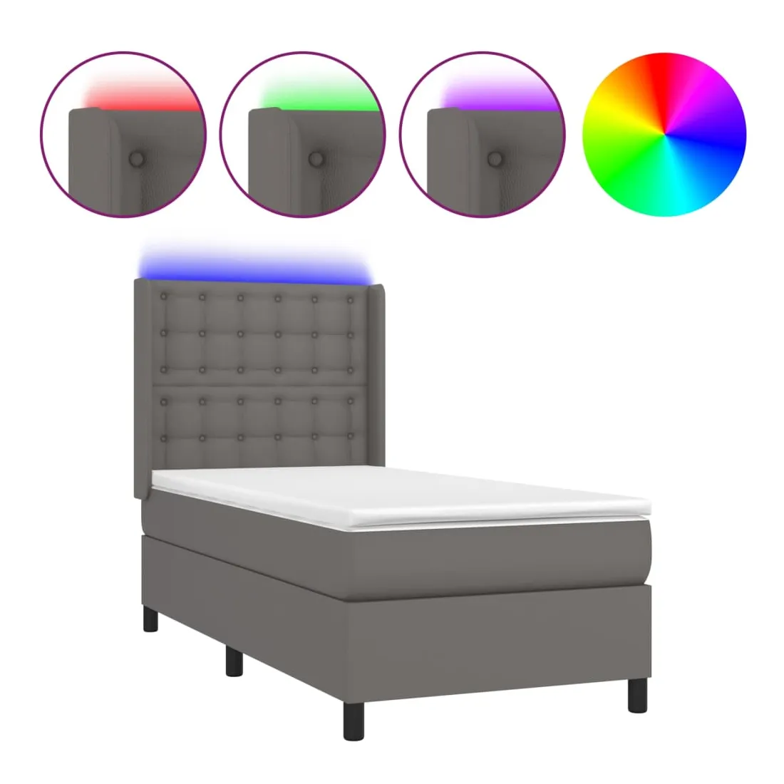 Sommier à lattes de lit matelas LED Gris 100x200 cm Similicuir