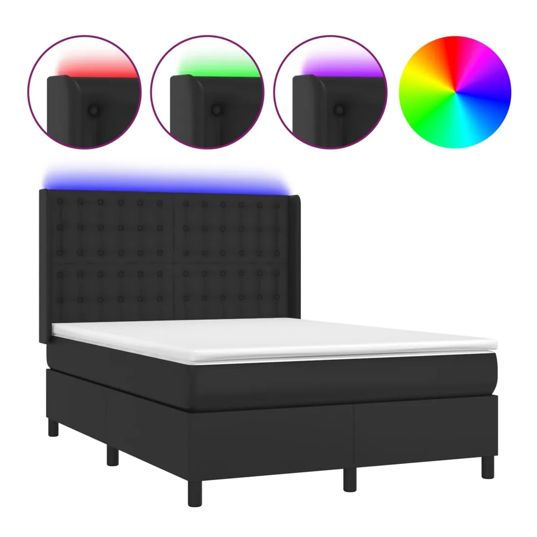 Utilisez ce sommier tapissier avec matelas et LED pour profiter d'un sommeil réparateur ! C'est le point central de votre chambre à coucher. Similicuir durable : le similicuir de qualité supérieure est un matériau très durable. Il est résistant aux taches, ce qui le rend facile à nettoyer avec un chiffon humide. La surface lisse donne également un aspect luxueux et la beauté du cuir véritable.Tête de lit pratique : la tête de lit est réglable en hauteur selon vos préférences. La tête de lit vous offre un excellent soutien du dos lorsque vous êtes assis dans votre lit pour lire ou regarder la télévision.Bande LED colorée : apportez de l'éclairage dans l'obscurité avec des lumières LED colorées !Matelas à ressorts ensachés : le ressort ensaché individuel intégré est connu pour sa très haute qualité tout en assurant un haut niveau de durabilité et d'adaptabilité. Il peut absorber efficacement le bruit et les chocs causés par les sauts et les rotations.Protège-matelas doux pour la peau : le protège-matelas est recouvert d'un tissu résistant et doux pour la peau, ce qui le rend souple et confortable. Remarque :Pour des raisons d'hygiène, le matelas ne peut pas être retourné si l'emballage est retiré ou ouvert.Seule la partie avec un symbole de ciseaux peut être coupée et seule la partie avec l'USB continuera à fonctionner comme avant.Chaque produit est livré avec un manuel de montage dans la boîte pour un montage facile.Ce produit est doté d'un connecteur USB, mais la source d'alimentation certifiée de USB 5V n'est pas incluse.