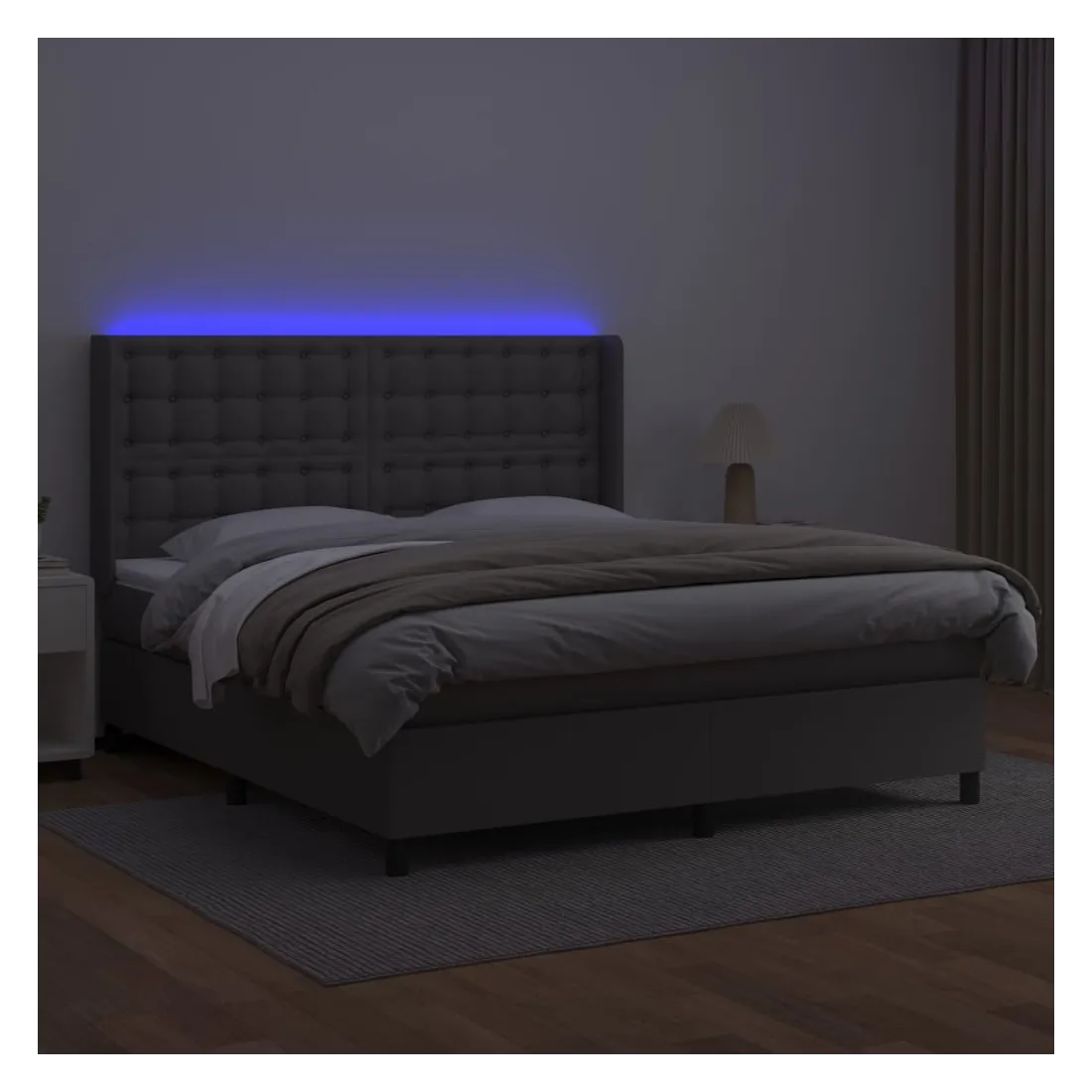 Utilisez ce sommier tapissier avec matelas et LED pour profiter d'un sommeil réparateur ! C'est le point central de votre chambre à coucher. Similicuir durable : le similicuir de qualité supérieure est un matériau très durable. Il est résistant aux taches, ce qui le rend facile à nettoyer avec un chiffon humide. La surface lisse donne également un aspect luxueux et la beauté du cuir véritable.Tête de lit pratique : la tête de lit est réglable en hauteur selon vos préférences. La tête de lit vous offre un excellent soutien du dos lorsque vous êtes assis dans votre lit pour lire ou regarder la télévision.Bande LED colorée : apportez de l'éclairage dans l'obscurité avec des lumières LED colorées !Matelas à ressorts ensachés : le ressort ensaché individuel intégré est connu pour sa très haute qualité tout en assurant un haut niveau de durabilité et d'adaptabilité. Il peut absorber efficacement le bruit et les chocs causés par les sauts et les rotations.Protège-matelas doux pour la peau : le protège-matelas est recouvert d'un tissu résistant et doux pour la peau, ce qui le rend souple et confortable. Remarque :Pour des raisons d'hygiène, le matelas ne peut pas être retourné si l'emballage est retiré ou ouvert.Seule la partie avec un symbole de ciseaux peut être coupée et seule la partie avec l'USB continuera à fonctionner comme avant.Chaque produit est livré avec un manuel de montage dans la boîte pour un montage facile.Ce produit est doté d'un connecteur USB, mais la source d'alimentation certifiée de USB 5V n'est pas incluse.
