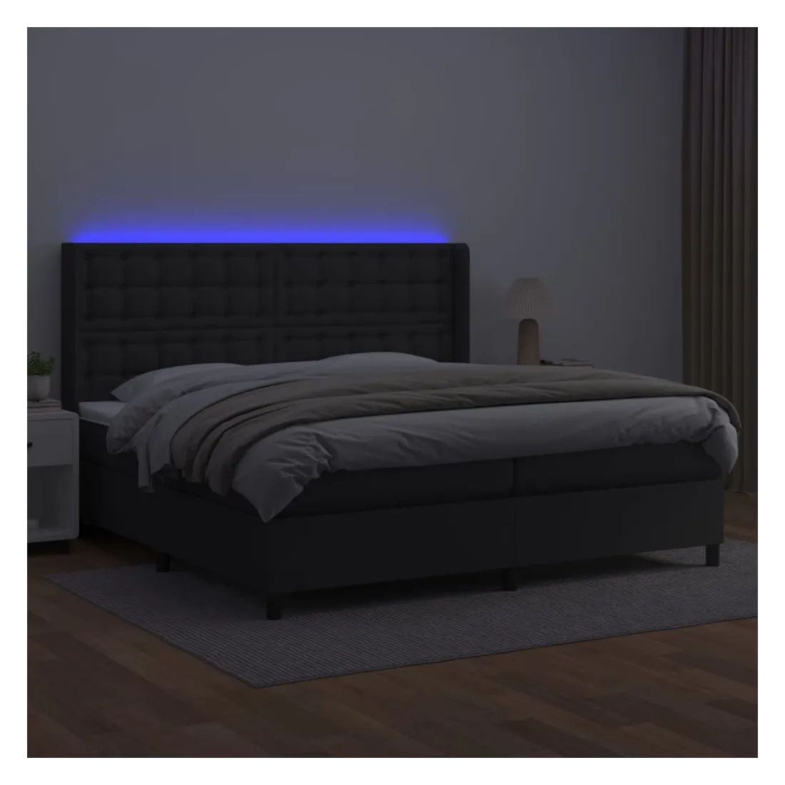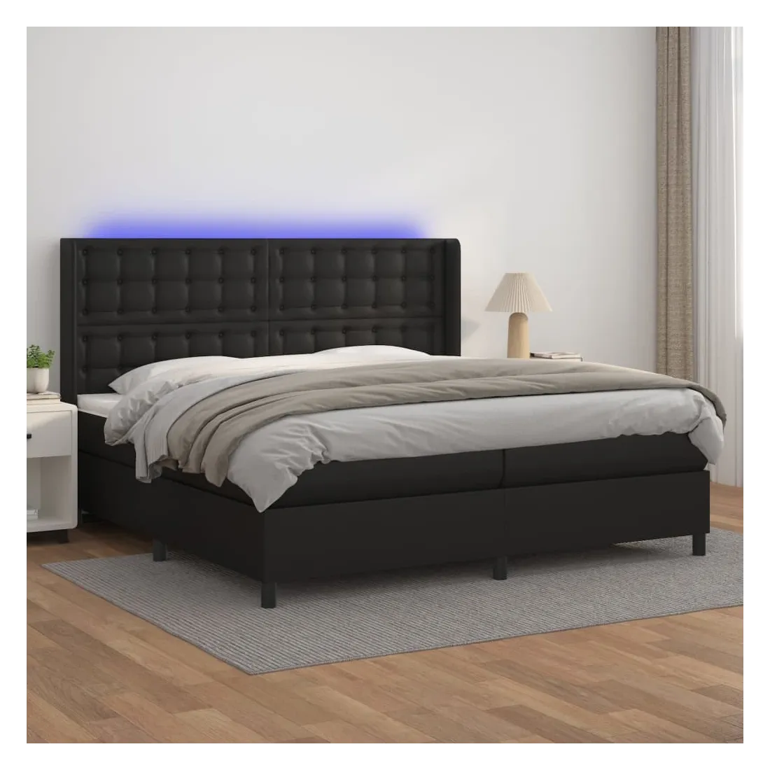 Utilisez ce sommier tapissier avec matelas et LED pour profiter d'un sommeil réparateur ! C'est le point central de votre chambre à coucher. Similicuir durable : le similicuir de qualité supérieure est un matériau très durable. Il est résistant aux taches, ce qui le rend facile à nettoyer avec un chiffon humide. La surface lisse donne également un aspect luxueux et la beauté du cuir véritable.Tête de lit pratique : la tête de lit est réglable en hauteur selon vos préférences. La tête de lit vous offre un excellent soutien du dos lorsque vous êtes assis dans votre lit pour lire ou regarder la télévision.Bande LED colorée : apportez de l'éclairage dans l'obscurité avec des lumières LED colorées !Matelas à ressorts ensachés : le ressort ensaché individuel intégré est connu pour sa très haute qualité tout en assurant un haut niveau de durabilité et d'adaptabilité. Il peut absorber efficacement le bruit et les chocs causés par les sauts et les rotations.Protège-matelas doux pour la peau : le protège-matelas est recouvert d'un tissu résistant et doux pour la peau, ce qui le rend souple et confortable. Remarque :Pour des raisons d'hygiène, le matelas ne peut pas être retourné si l'emballage est retiré ou ouvert.Seule la partie avec un symbole de ciseaux peut être coupée et seule la partie avec l'USB continuera à fonctionner comme avant.Chaque produit est livré avec un manuel de montage dans la boîte pour un montage facile.Ce produit est doté d'un connecteur USB, mais la source d'alimentation certifiée de USB 5V n'est pas incluse.