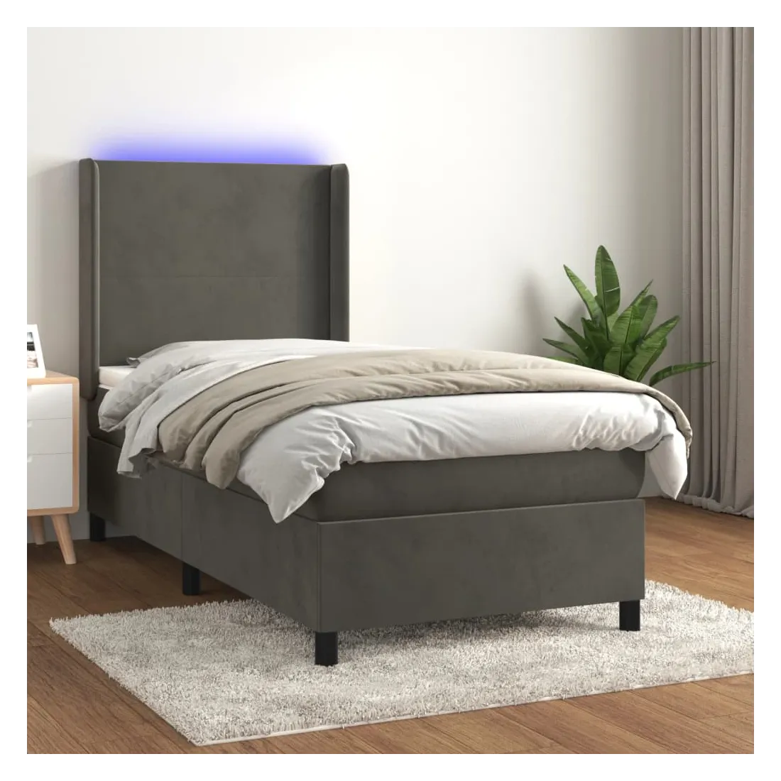Utilisez ce sommier tapissier avec matelas et LED pour profiter d'un sommeil réparateur ! C'est le point central de votre chambre à coucher. Velours doux : le velours est un tissu doux et luxueux qui se reconnaît à son tas dense de fibres uniformément coupées qui ont une touche lisse. Le tissu en velours présente un toucher doux distinctif, ce qui le rend confortable au toucher.Tête de lit pratique : la tête de lit est réglable en hauteur selon vos préférences. La tête de lit vous offre un excellent soutien du dos lorsque vous êtes assis dans votre lit pour lire ou regarder la télévision.Bande LED colorée : apportez de l'éclairage dans l'obscurité avec des lumières LED colorées !Matelas à ressorts ensachés : le ressort ensaché individuel intégré est connu pour sa très haute qualité tout en assurant un haut niveau de durabilité et d'adaptabilité. Il peut absorber efficacement le bruit et les chocs causés par les sauts et les rotations.Protège-matelas doux pour la peau : le protège-matelas est recouvert d'un tissu résistant et doux pour la peau, ce qui le rend souple et confortable. Remarque :Pour des raisons d'hygiène, le matelas ne peut pas être retourné si l'emballage est retiré ou ouvert.Seule la partie avec un symbole de ciseaux peut être coupée et seule la partie avec l'USB continuera à fonctionner comme avant.Chaque produit est livré avec un manuel de montage dans la boîte pour un montage facile.Ce produit est doté d'un connecteur USB, mais la source d'alimentation certifiée de USB 5V n'est pas incluse.