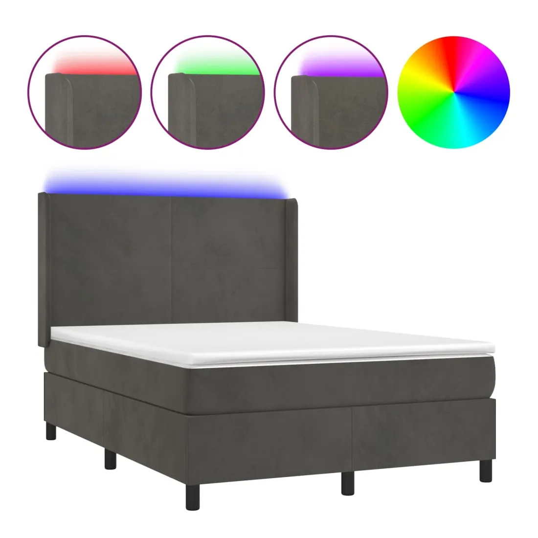 Sommier à lattes de lit matelas et LED Gris foncé 140x190 cm