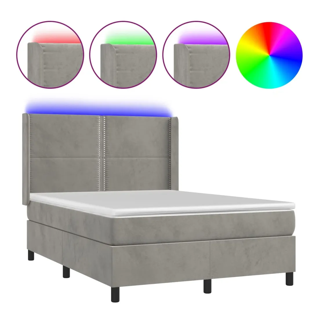 Sommier à lattes de lit matelas et LED Gris clair 140x200 cm