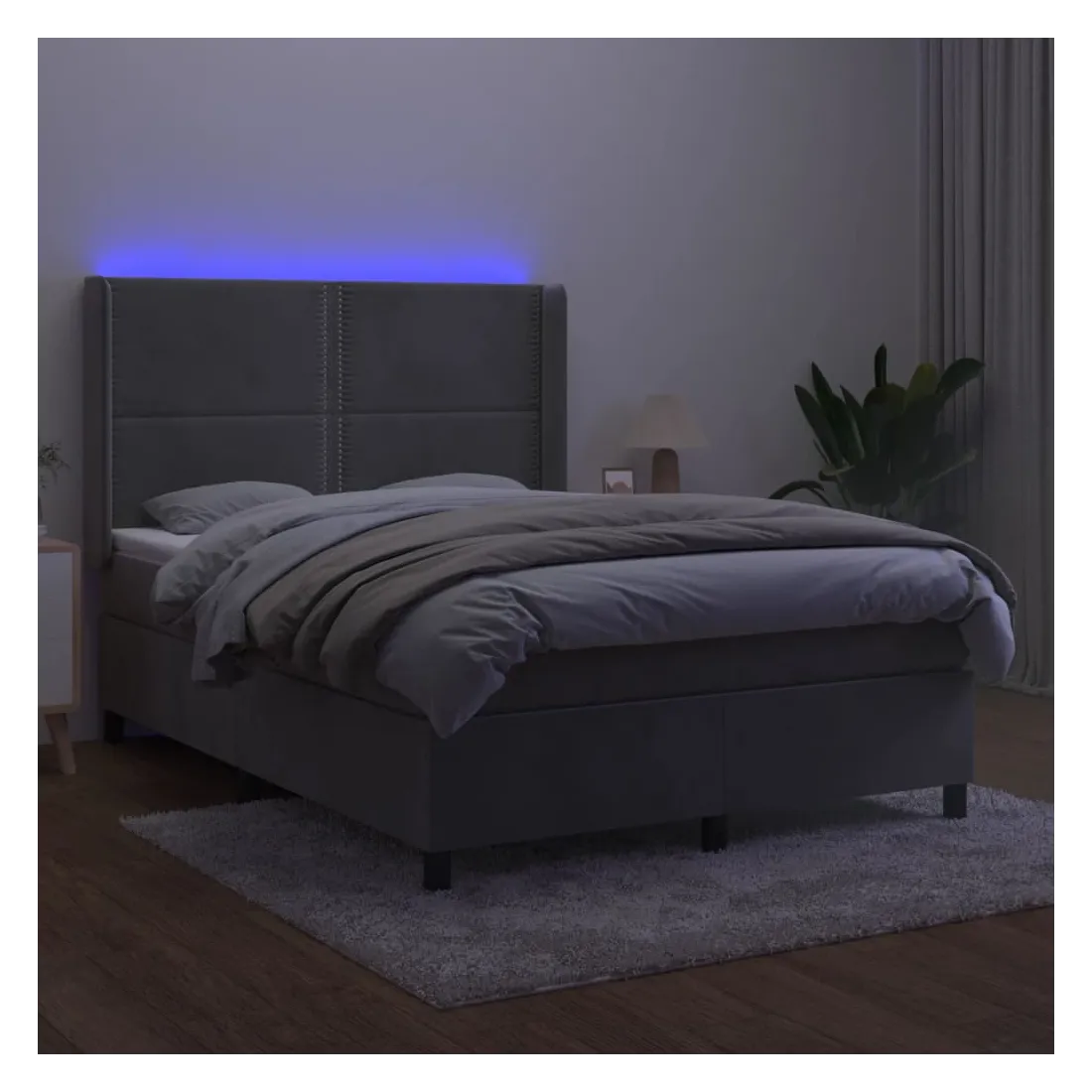Utilisez ce sommier tapissier avec matelas et LED pour profiter d'un sommeil réparateur ! C'est le point central de votre chambre à coucher. Velours doux : le velours est un tissu doux et luxueux qui se reconnaît à son tas dense de fibres uniformément coupées qui ont une touche lisse. Le tissu en velours présente un toucher doux distinctif, ce qui le rend confortable au toucher.Tête de lit pratique : la tête de lit est réglable en hauteur selon vos préférences. La tête de lit vous offre un excellent soutien du dos lorsque vous êtes assis dans votre lit pour lire ou regarder la télévision.Bande LED colorée : apportez de l'éclairage dans l'obscurité avec des lumières LED colorées !Matelas à ressorts ensachés : le ressort ensaché individuel intégré est connu pour sa très haute qualité tout en assurant un haut niveau de durabilité et d'adaptabilité. Il peut absorber efficacement le bruit et les chocs causés par les sauts et les rotations.Protège-matelas doux pour la peau : le protège-matelas est recouvert d'un tissu résistant et doux pour la peau, ce qui le rend souple et confortable. Remarque :Pour des raisons d'hygiène, le matelas ne peut pas être retourné si l'emballage est retiré ou ouvert.Seule la partie avec un symbole de ciseaux peut être coupée et seule la partie avec l'USB continuera à fonctionner comme avant.Chaque produit est livré avec un manuel de montage dans la boîte pour un montage facile.Ce produit est doté d'un connecteur USB, mais la source d'alimentation certifiée de USB 5V n'est pas incluse.