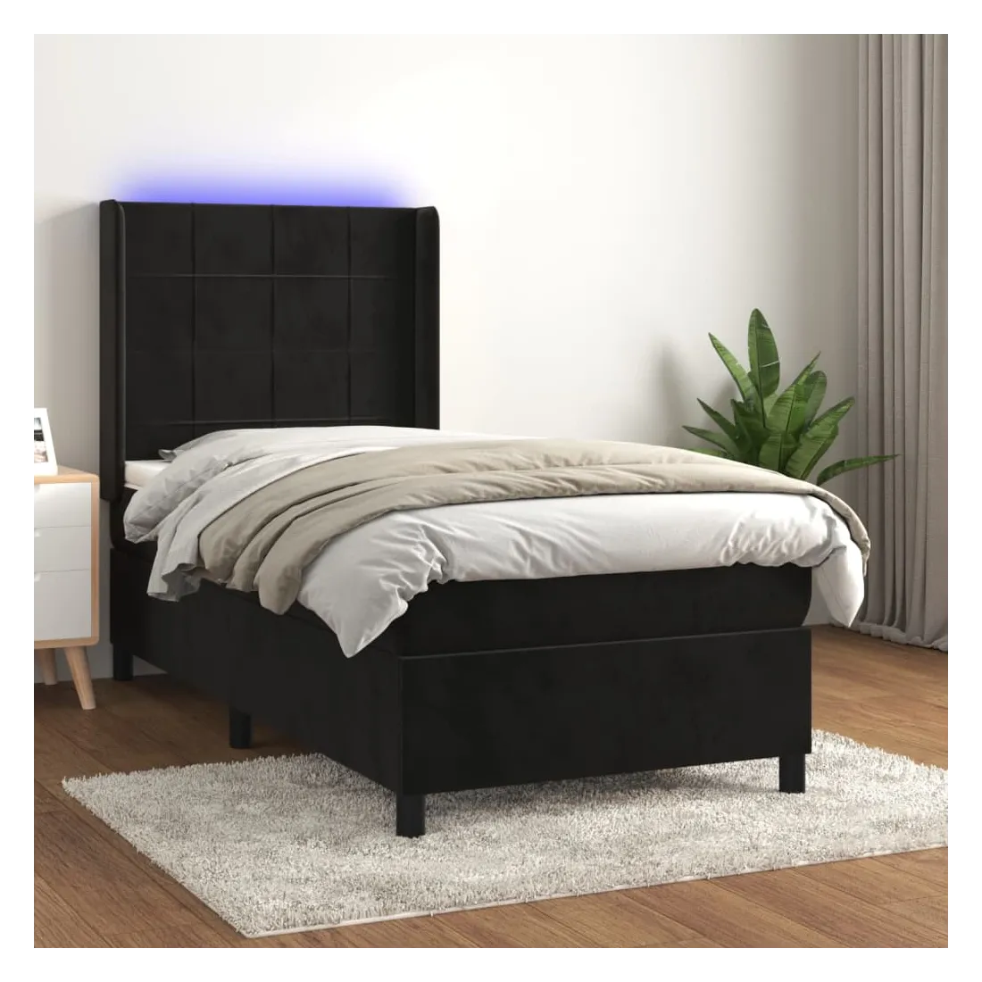 Sommier à lattes de lit matelas et LED Noir 80x200cm Velours