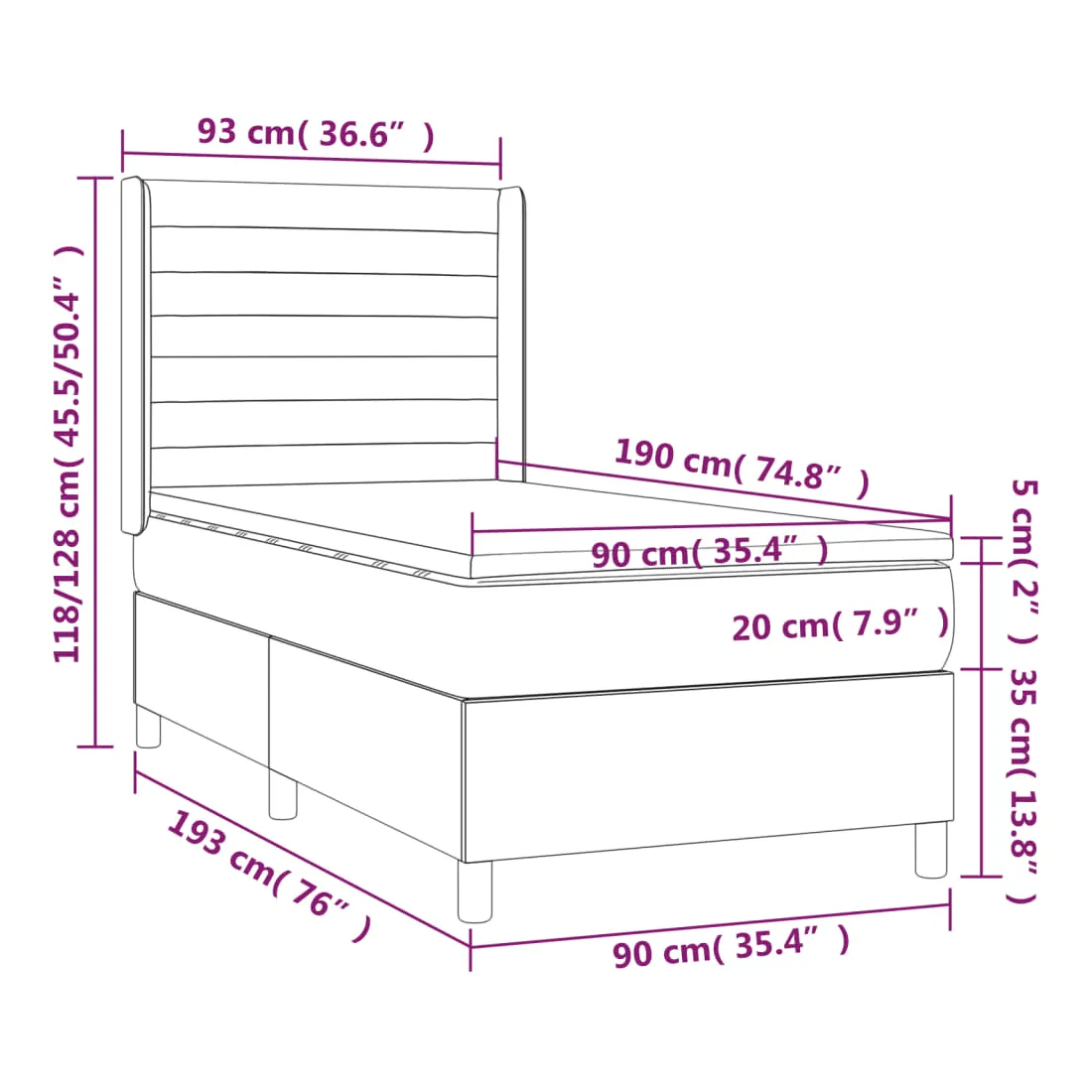 90 x 190 cm