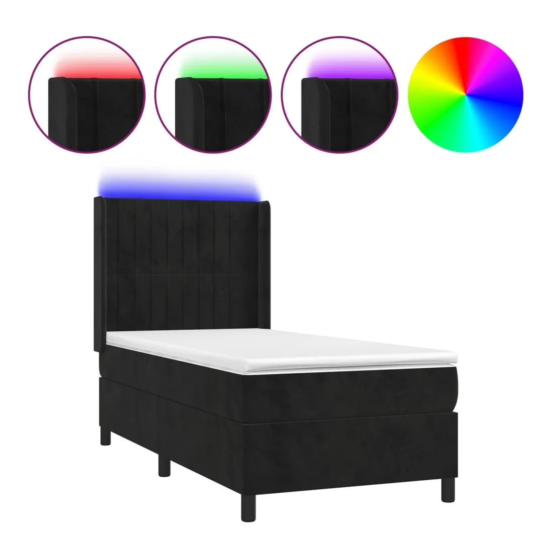 Sommier à lattes de lit matelas et LED Noir 100x200 cm Velours