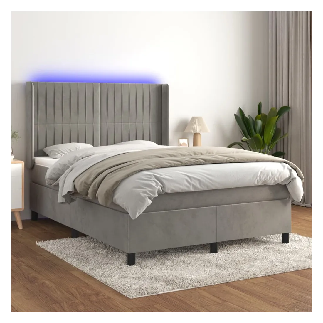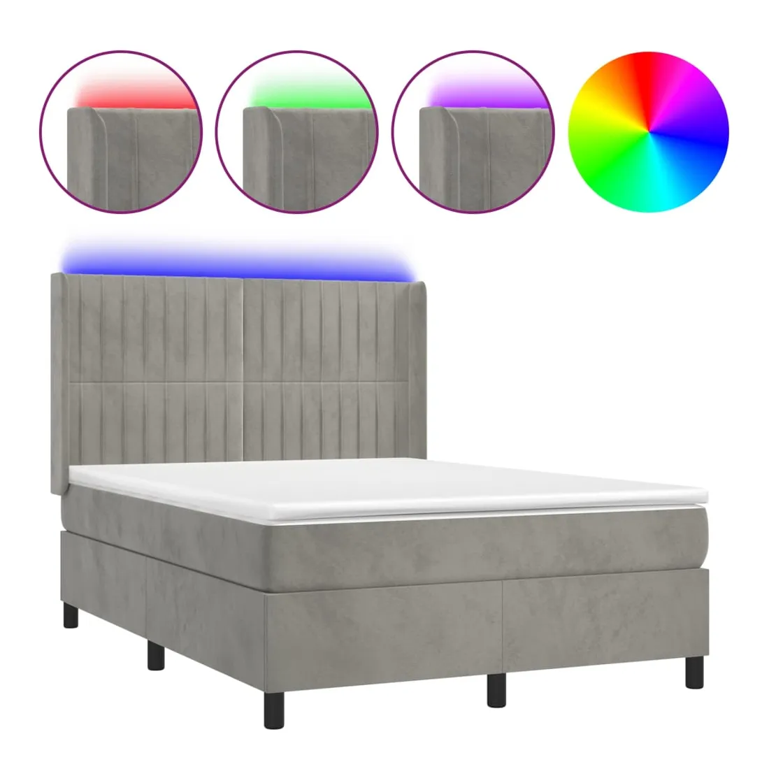 Sommier à lattes de lit matelas et LED Gris clair 140x200 cm