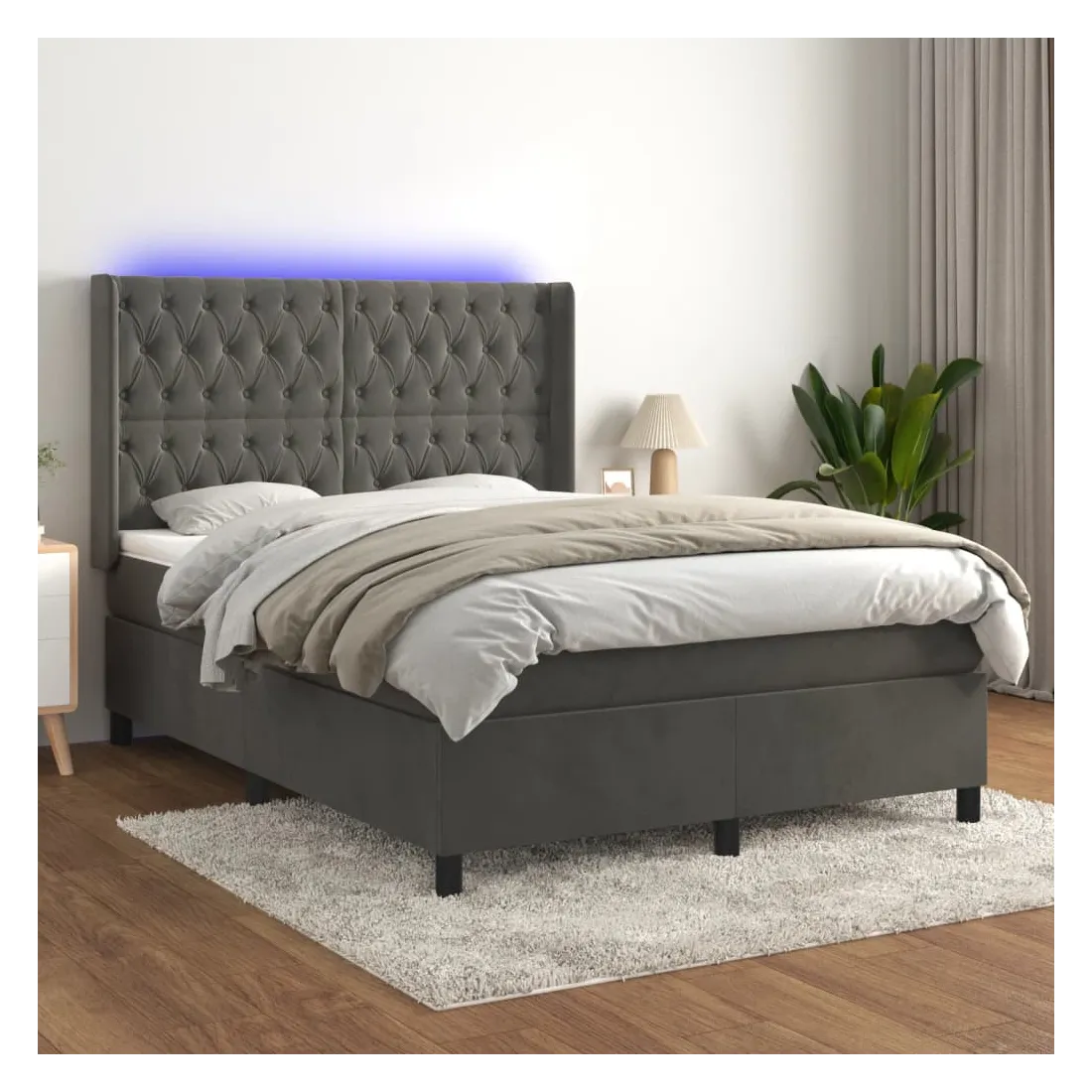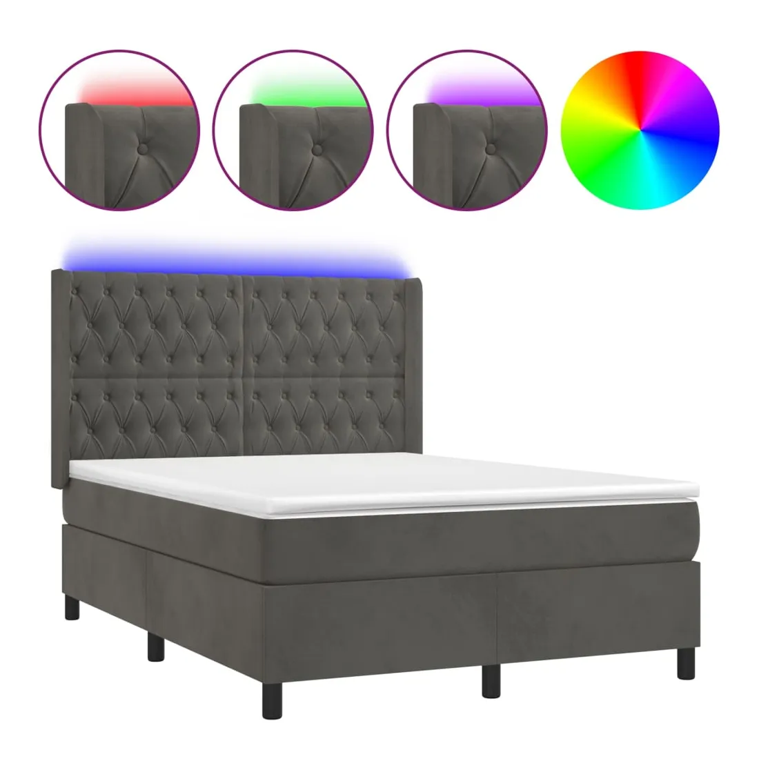 Sommier à lattes de lit matelas et LED Gris foncé 140x200 cm
