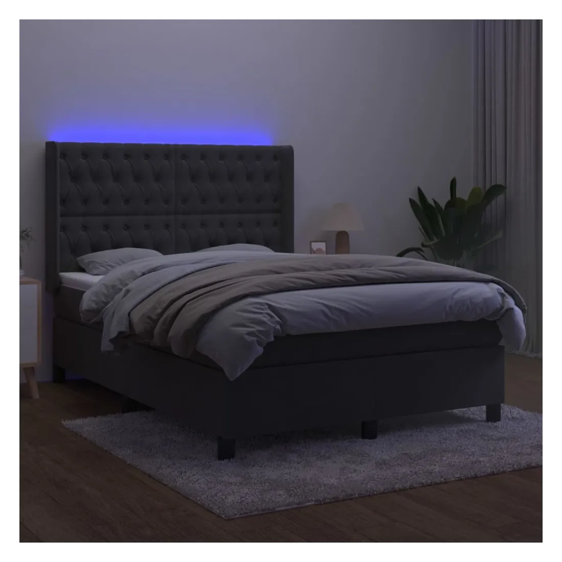 Utilisez ce sommier tapissier avec matelas et LED pour profiter d'un sommeil réparateur ! C'est le point central de votre chambre à coucher. Velours doux : le velours est un tissu doux et luxueux qui se reconnaît à son tas dense de fibres uniformément coupées qui ont une touche lisse. Le tissu en velours présente un toucher doux distinctif, ce qui le rend confortable au toucher.Tête de lit pratique : la tête de lit est réglable en hauteur selon vos préférences. La tête de lit vous offre un excellent soutien du dos lorsque vous êtes assis dans votre lit pour lire ou regarder la télévision.Bande LED colorée : apportez de l'éclairage dans l'obscurité avec des lumières LED colorées !Matelas à ressorts ensachés : le ressort ensaché individuel intégré est connu pour sa très haute qualité tout en assurant un haut niveau de durabilité et d'adaptabilité. Il peut absorber efficacement le bruit et les chocs causés par les sauts et les rotations.Protège-matelas doux pour la peau : le protège-matelas est recouvert d'un tissu résistant et doux pour la peau, ce qui le rend souple et confortable. Remarque :Pour des raisons d'hygiène, le matelas ne peut pas être retourné si l'emballage est retiré ou ouvert.Seule la partie avec un symbole de ciseaux peut être coupée et seule la partie avec l'USB continuera à fonctionner comme avant.Chaque produit est livré avec un manuel de montage dans la boîte pour un montage facile.Ce produit est doté d'un connecteur USB, mais la source d'alimentation certifiée de USB 5V n'est pas incluse.