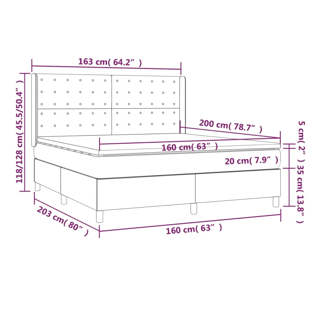 Sommier à lattes de lit matelas et LED Gris clair 160x200 cm