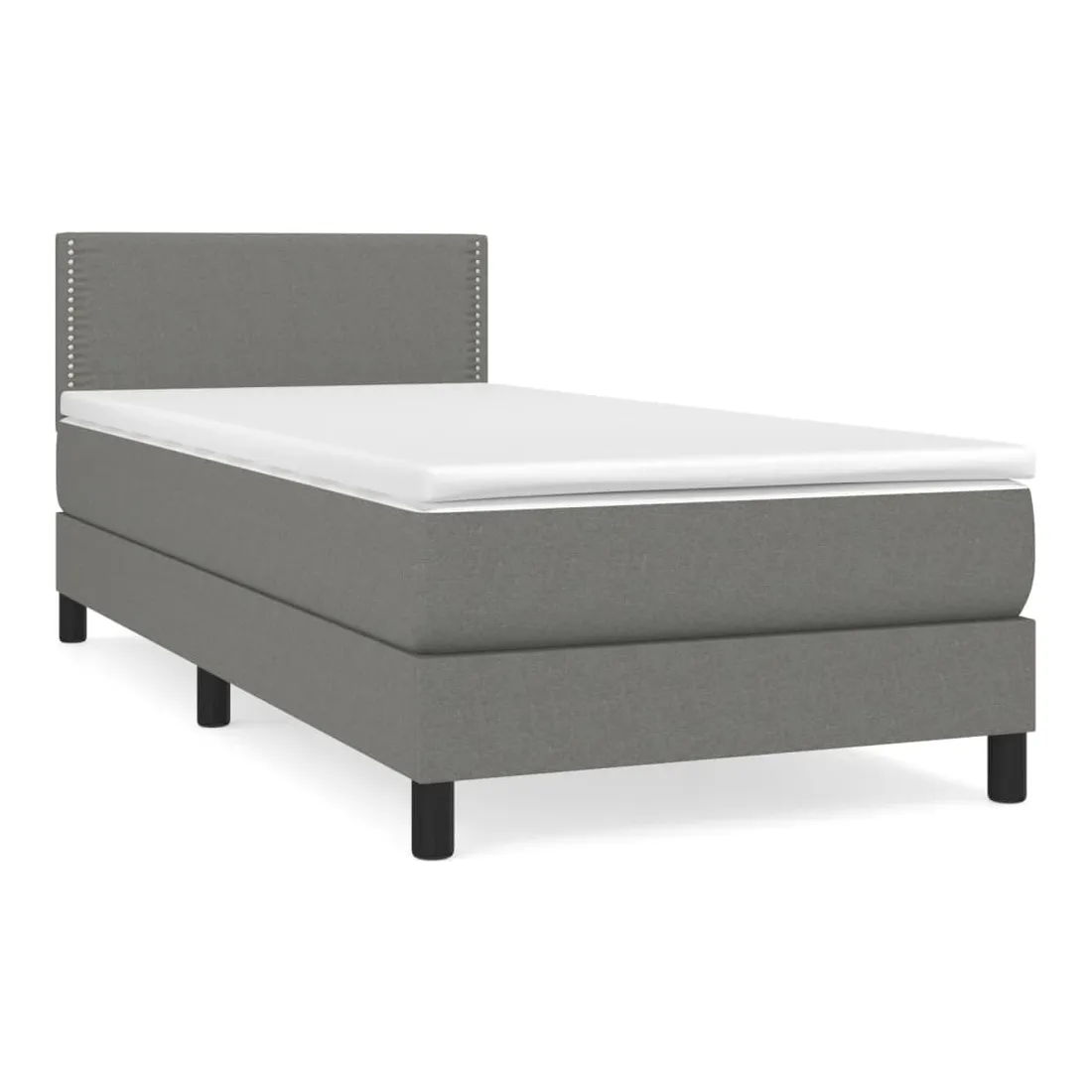 Sommier à lattes de lit avec matelas Gris foncé 90x200 cm Tissu