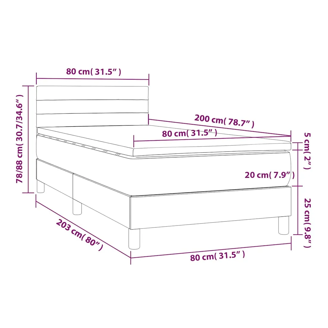 • Dimensions : 80 x 200 x 20 cm (l x L x H)