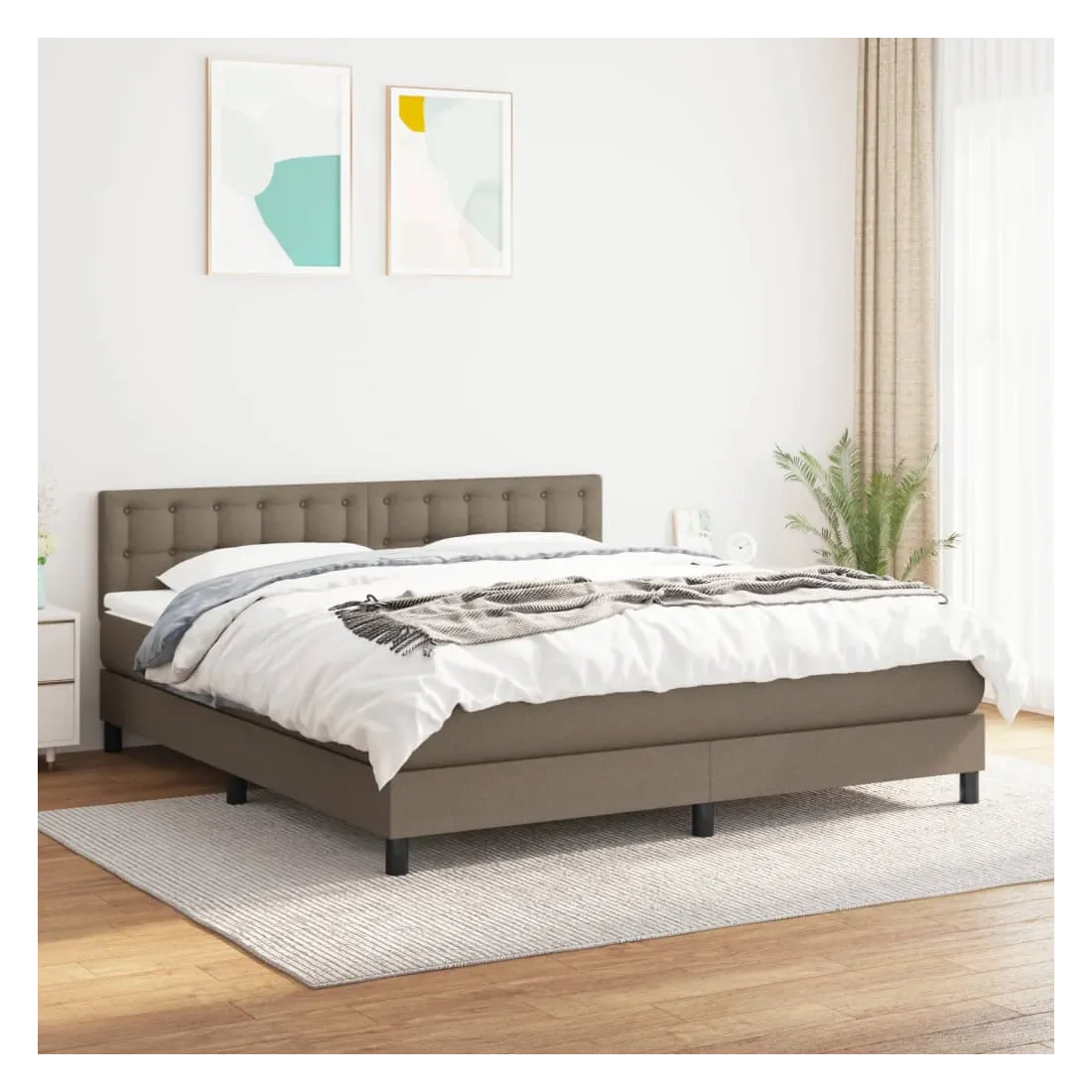 Sommier à lattes de lit avec matelas Taupe 160x200 cm Tissu