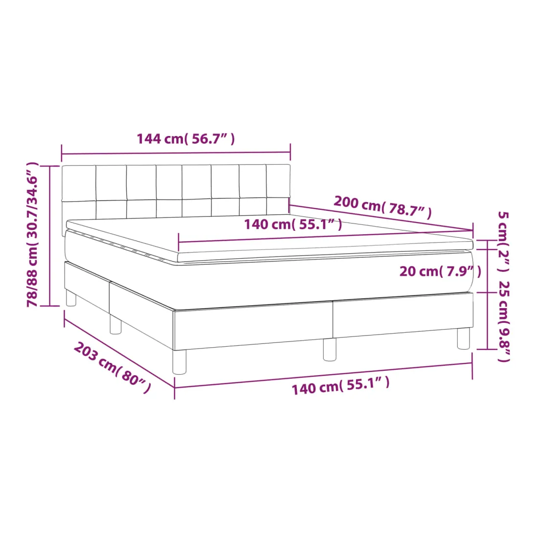 - Dimensions : 140 x 200 x 20 cm (l x L x H)