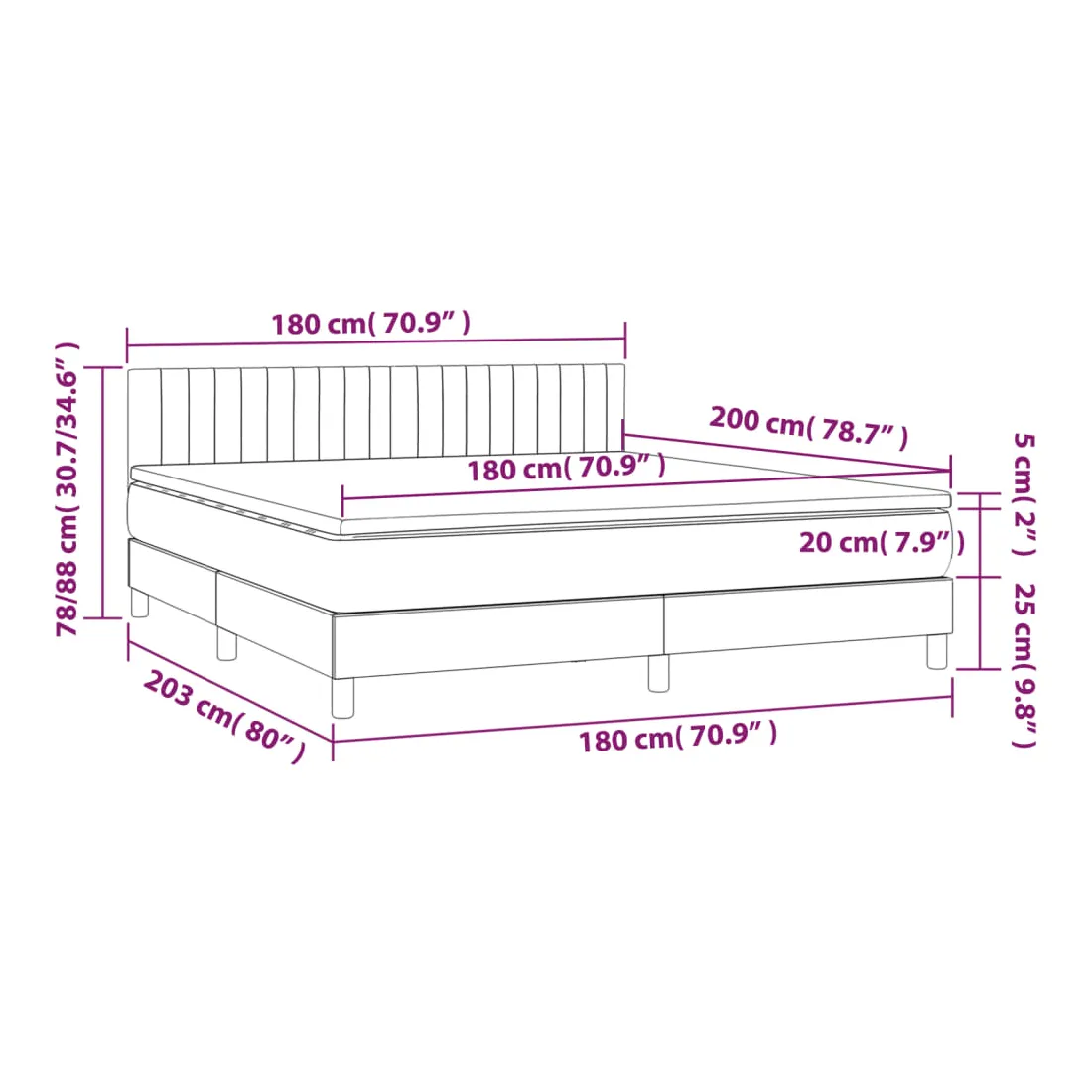 • Dimensions : 180 x 200 x 20 cm (l x L x H)