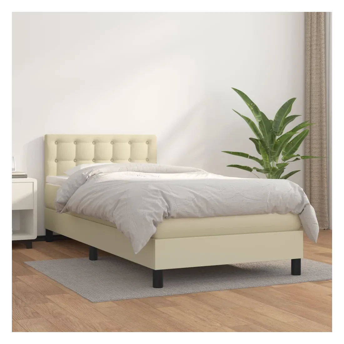 Sommier à lattes de lit avec matelas Crème 100x200cm Similicuir