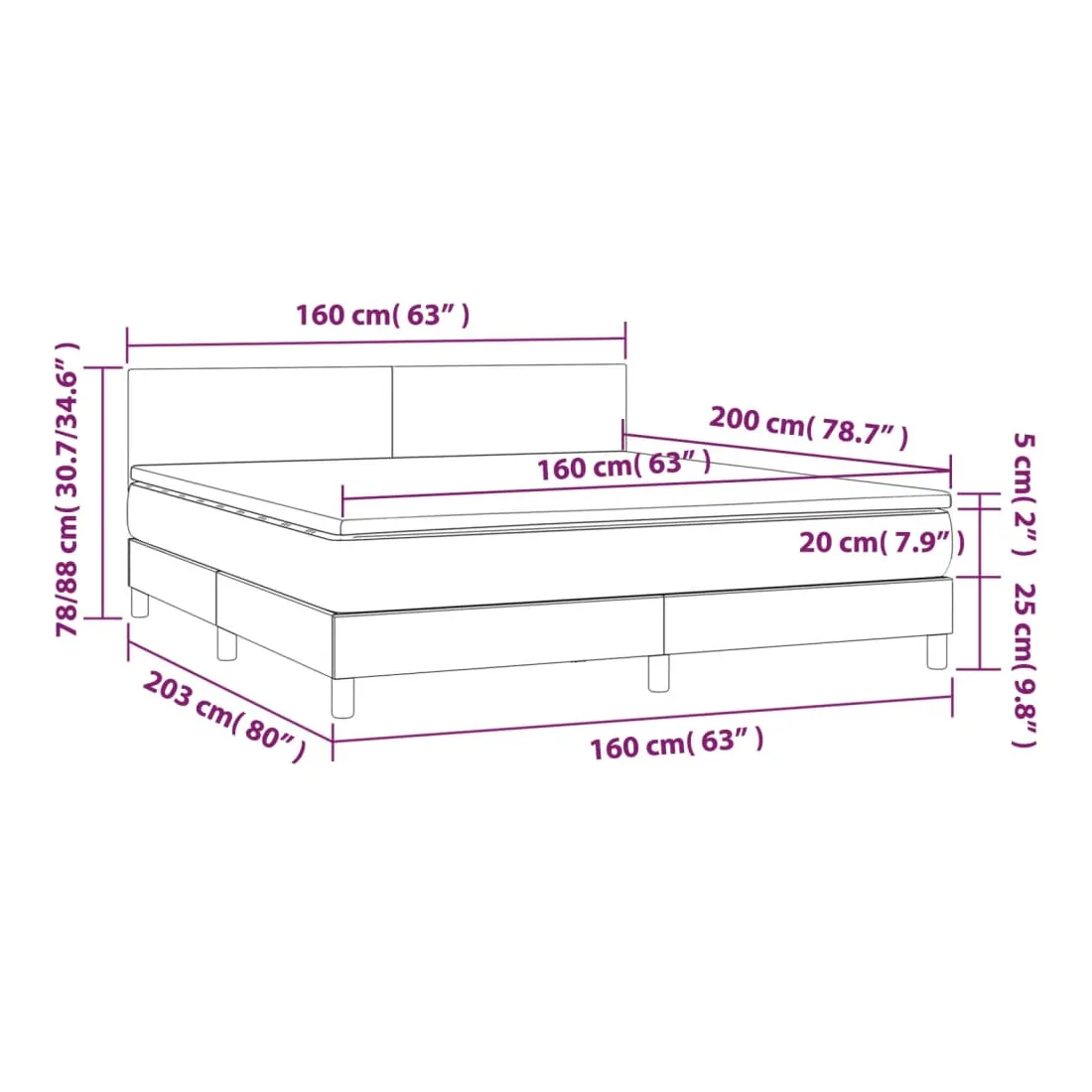 Utilisez ce lit à sommier pour profiter d'une nuit de sommeil réparatrice ! Il vous offre une relaxation maximale et un sommeil agréable. Velours doux : le velours est un tissu doux et luxueux qui se reconnaît à son tas dense de fibres uniformément coupées qui ont une touche lisse. Le tissu en velours présente un toucher doux distinctif, ce qui le rend confortable au toucher.Tête de lit pratique : la tête de lit est réglable en hauteur selon vos préférences. La tête de lit vous offre un excellent soutien du dos lorsque vous êtes assis dans votre lit pour lire ou regarder la télévision.Matelas à ressorts ensachés : le ressort ensaché individuel intégré est connu pour sa très haute qualité tout en assurant un haut niveau de durabilité et d'adaptabilité. Il peut absorber efficacement le bruit et les chocs causés par les sauts et les rotations.Support moyen-dur : ce matelas de lit offre une stabilité accrue et juste le niveau de fermeté sans sacrifier le confort. Il est donc idéal pour les personnes qui dorment sur le dos ou sur le ventre.Protège-matelas doux pour la peau : le protège-matelas est recouvert d'un tissu résistant et doux pour la peau, ce qui le rend souple et confortable. Remarque :Pour des raisons d'hygiène, le matelas ne peut pas être retourné si l'emballage est retiré ou ouvert.Chaque produit est livré avec un manuel de montage dans la boîte pour un montage facile.