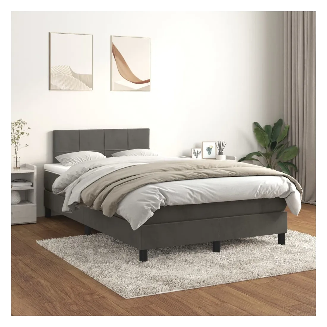 Utilisez ce lit à sommier pour profiter d'une nuit de sommeil réparatrice ! Il vous offre une relaxation maximale et un sommeil agréable. Velours doux : le velours est un tissu doux et luxueux qui se reconnaît à son tas dense de fibres uniformément coupées qui ont une touche lisse. Le tissu en velours présente un toucher doux distinctif, ce qui le rend confortable au toucher.Tête de lit pratique : la tête de lit est réglable en hauteur selon vos préférences. La tête de lit vous offre un excellent soutien du dos lorsque vous êtes assis dans votre lit pour lire ou regarder la télévision.Matelas à ressorts ensachés : le ressort ensaché individuel intégré est connu pour sa très haute qualité tout en assurant un haut niveau de durabilité et d'adaptabilité. Il peut absorber efficacement le bruit et les chocs causés par les sauts et les rotations.Support moyen-dur : ce matelas de lit offre une stabilité accrue et juste le niveau de fermeté sans sacrifier le confort. Il est donc idéal pour les personnes qui dorment sur le dos ou sur le ventre.Protège-matelas doux pour la peau : le protège-matelas est recouvert d'un tissu résistant et doux pour la peau, ce qui le rend souple et confortable. Remarque :Pour des raisons d'hygiène, le matelas ne peut pas être retourné si l'emballage est retiré ou ouvert.Chaque produit est livré avec un manuel de montage dans la boîte pour un montage facile.
