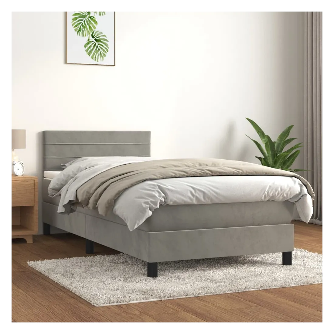 Sommier à lattes de lit et matelas Gris clair 90x190 cm Velours