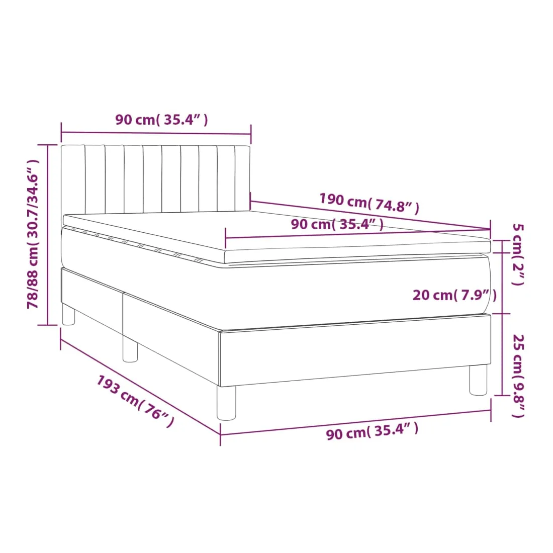 • Dimensions : 90 x 190 x 20 cm (l x L x H)