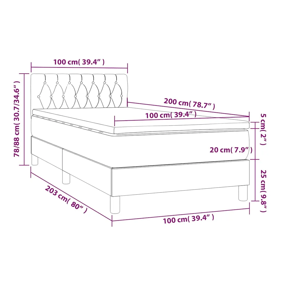 • Dimensions : 100 x 200 x 20 cm (l x L x H)