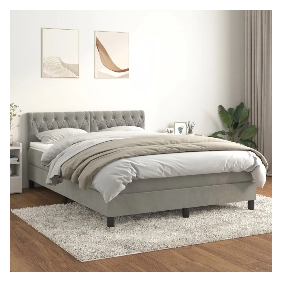Sommier à lattes de lit et matelas Gris clair 140x200cm Velours